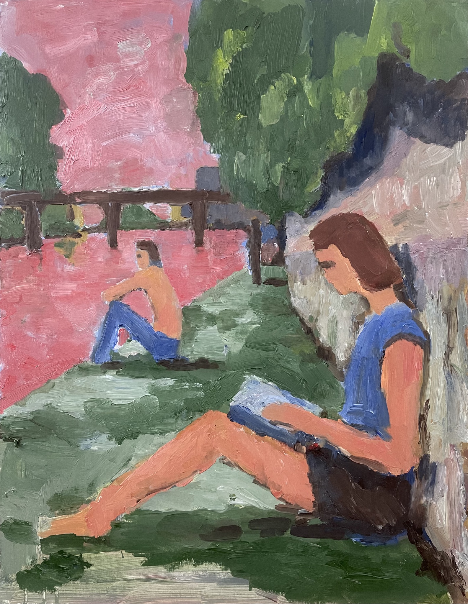Ik schilder graag mensen in allerlei situaties, binnen of buiten. Een landschap of interieur zonder mensen kan mij ook inspireren.