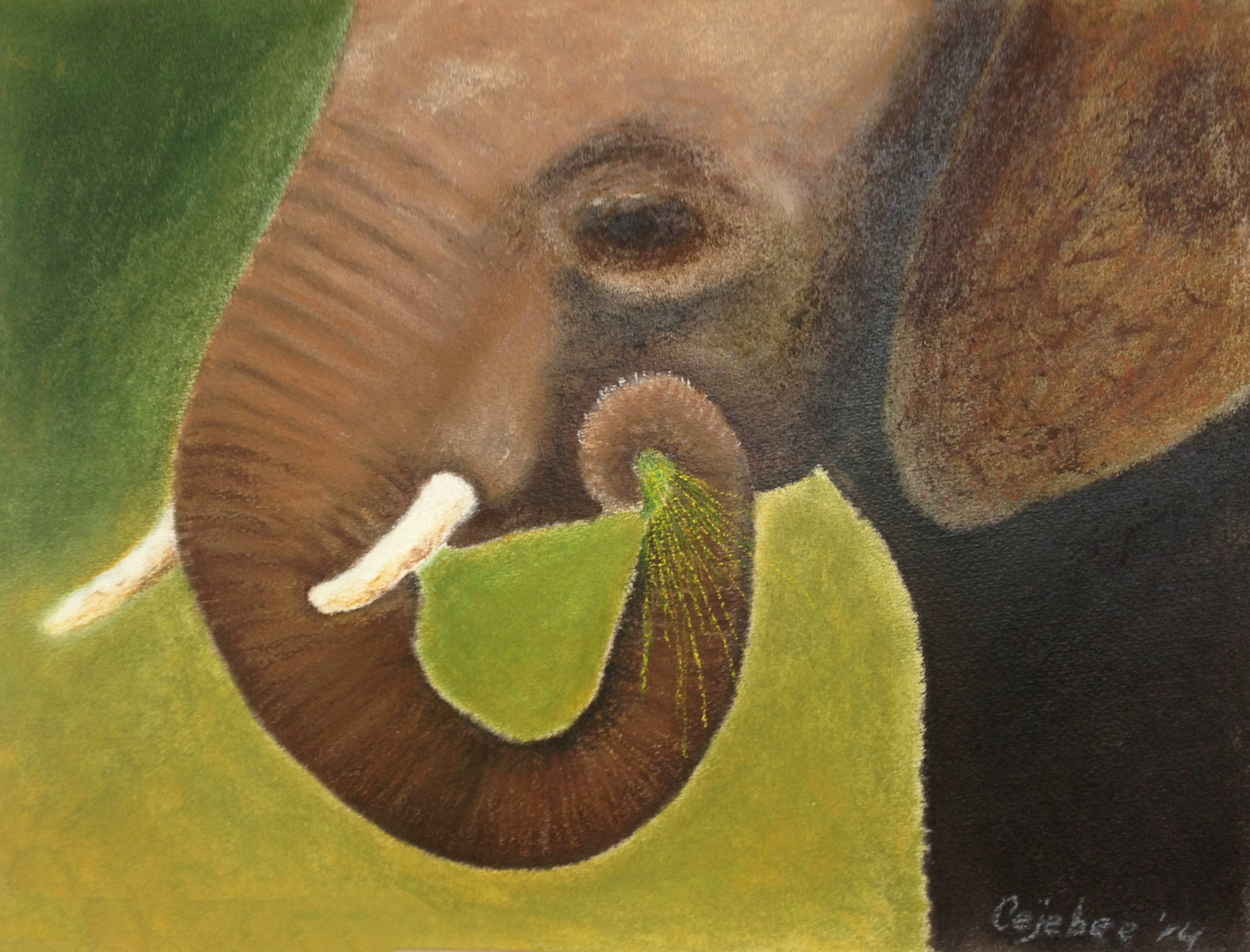 Gewoon een prachtig beest met een markante kop met slagtanden. Vastgelegd met soft pastel krijt.