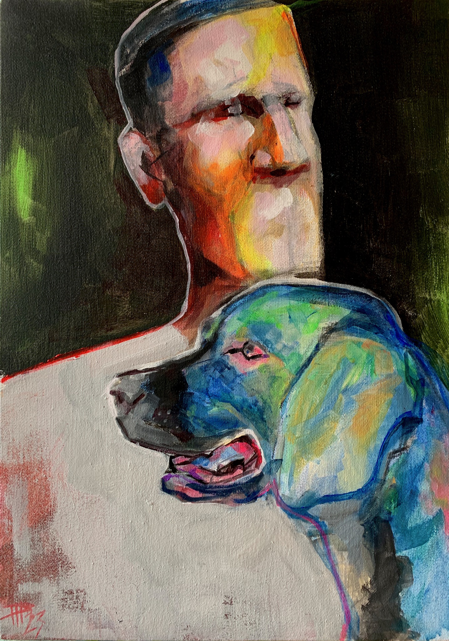 Blauw Man Blue Portrait Hond Dog Potret