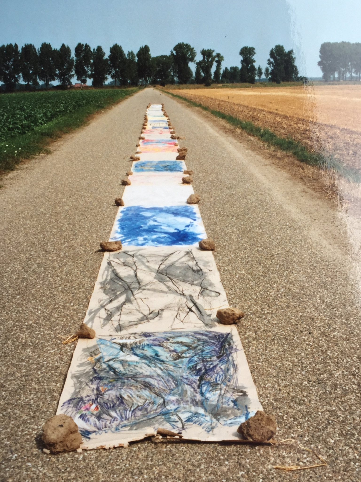 De eerste papierrol met werk in gemengde technieken. Deze manier van werken gebeurt met directheid en er is sprake van een continuïteit.