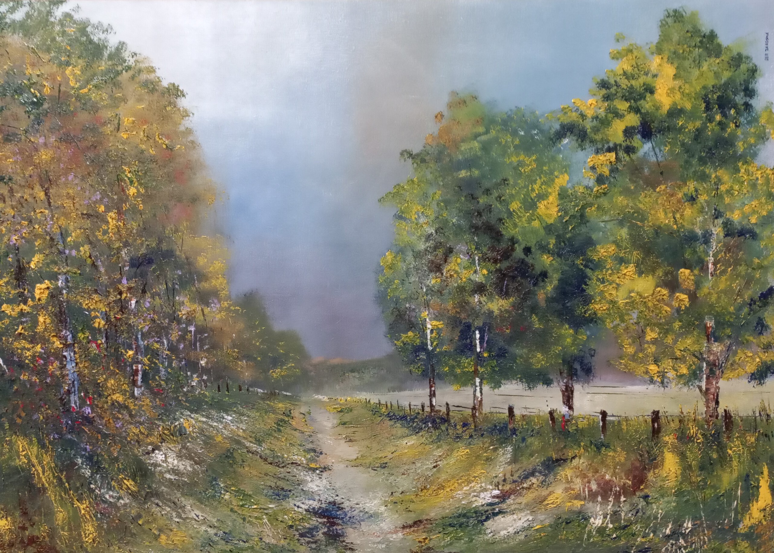 Realistische aquarellen en olieverf schilderijen van Hollands landschap, met altijd expressieve luchten boven de lage horizon zich spiegelend in de waterrijke polder. Ook werken uit de Franse Morvan en van de Oostelijke Algarve in Portugal.