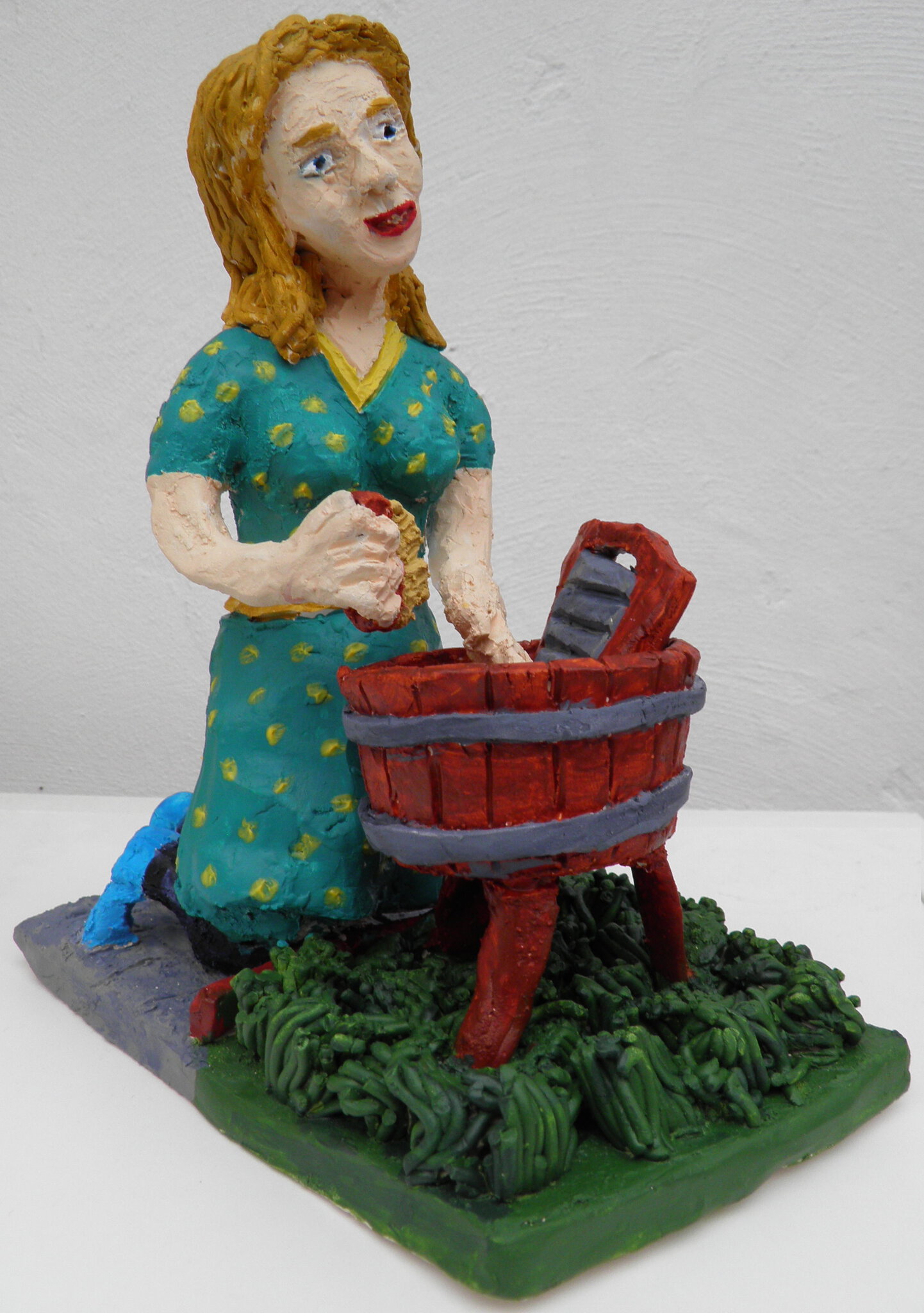 Zo waste mijn moeder in de jaren '50. Met een wasbord en een borstel in een wastobbe. Daarna door de wringer en laten drogen aan de waslijn.