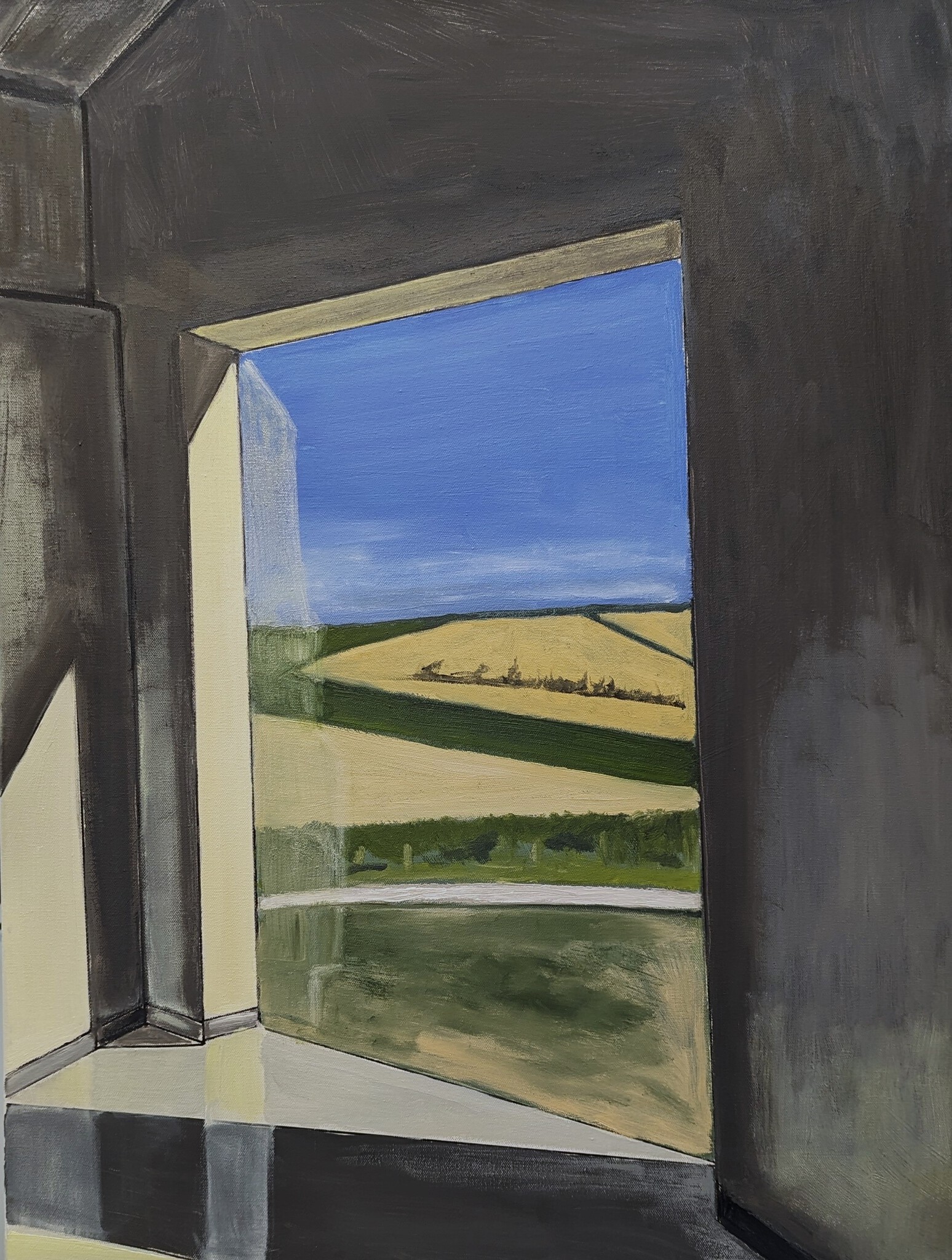 Uitzicht op de heuvels vanaf wijnopslag Guerrieri. De mooie schaduw en licht werking was de aanzet tot dit werk.