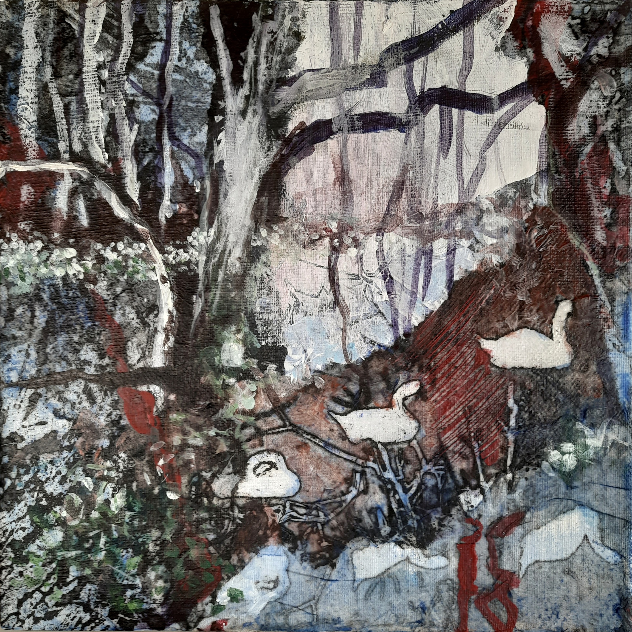 Schilderij Landschap Herinnering Zwanen 3d Bomen Bos Droom Vogels Poezie Melancholie