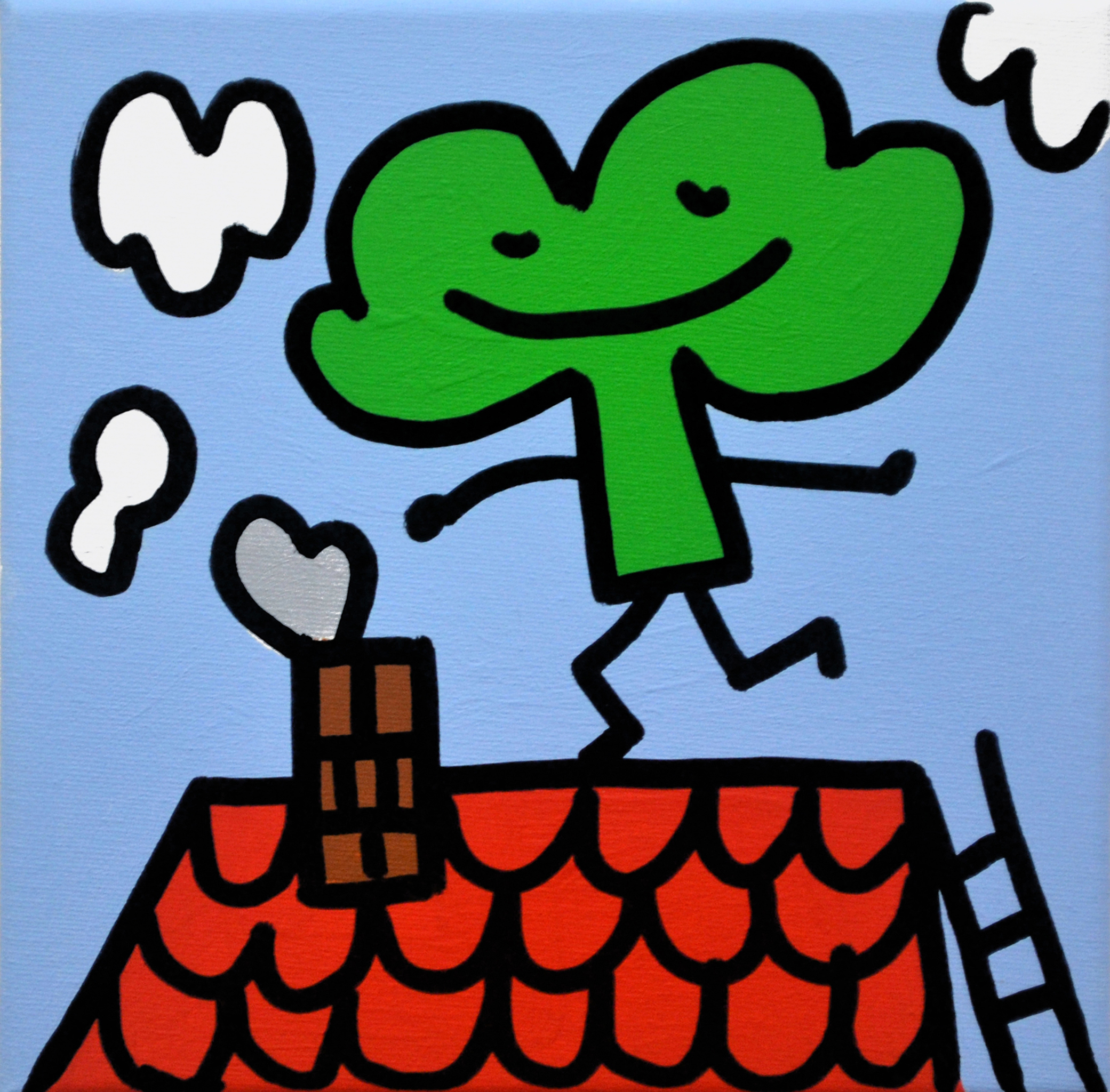 Absurd lyrische voorstelling van een boom op een dak. Dit werk is ook leverbaar inclusief baklijst.