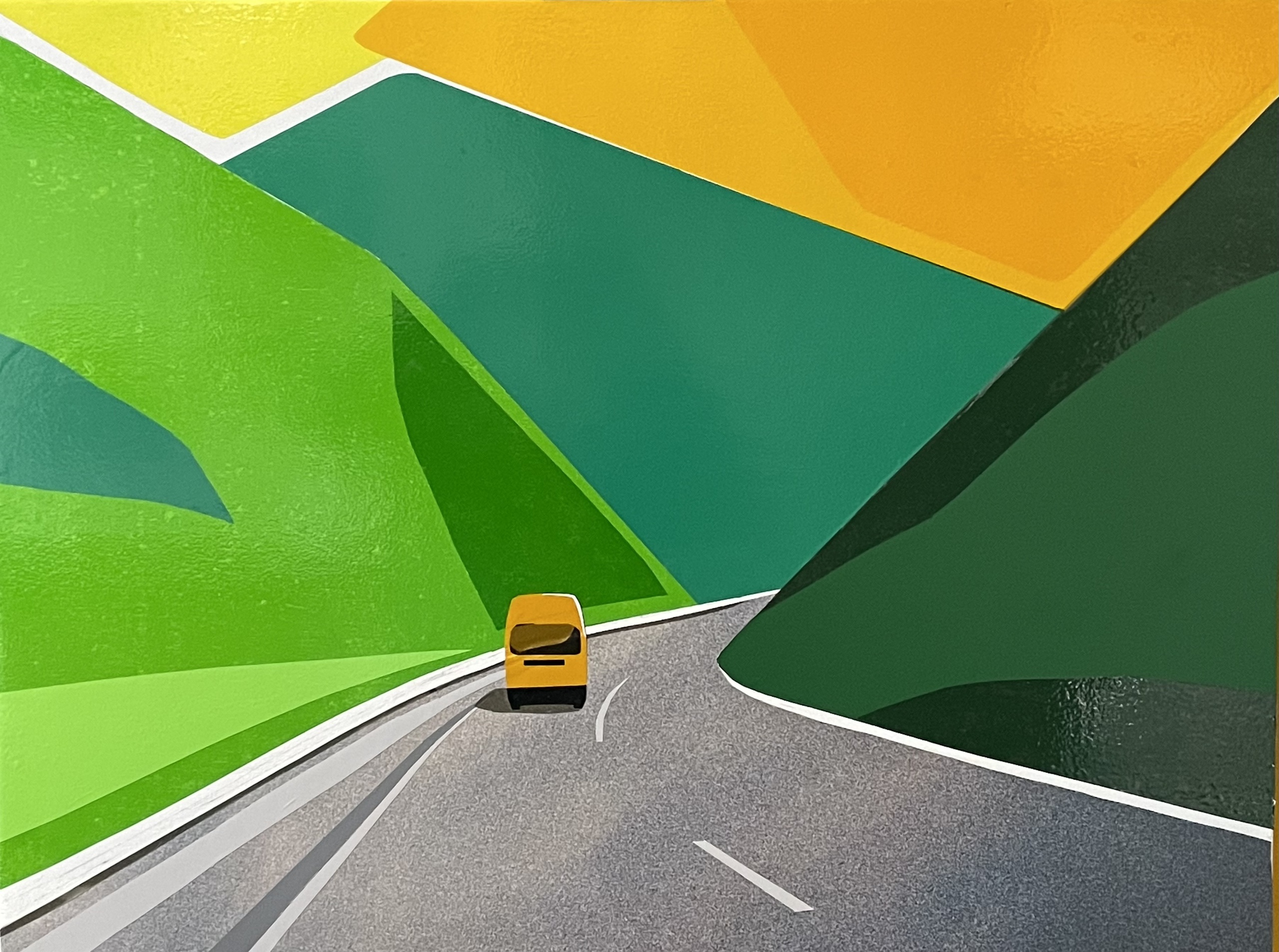 Collage Reis Kampeerbusje Camper Geel Groen Grijs Weg Bergen Nieuw- Zeeland Yellow Green Gras Mountains