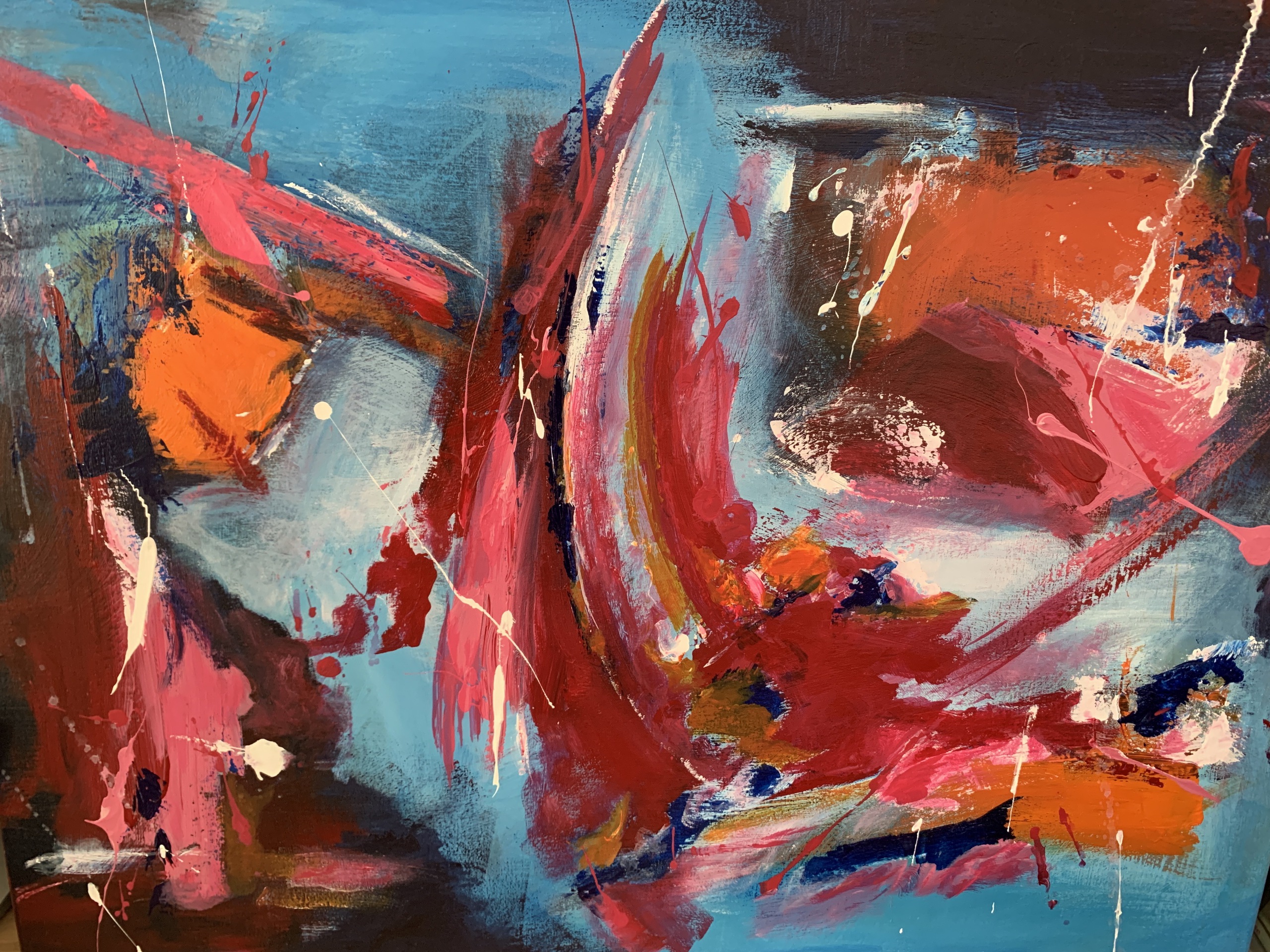 Ik schilder abstract of semi-abstract, experimenterend met kleuren, lagen en imperfectie. Kleuren drukken emotie uit en zijn heel persoonlijk. Acryl of mixed-media.