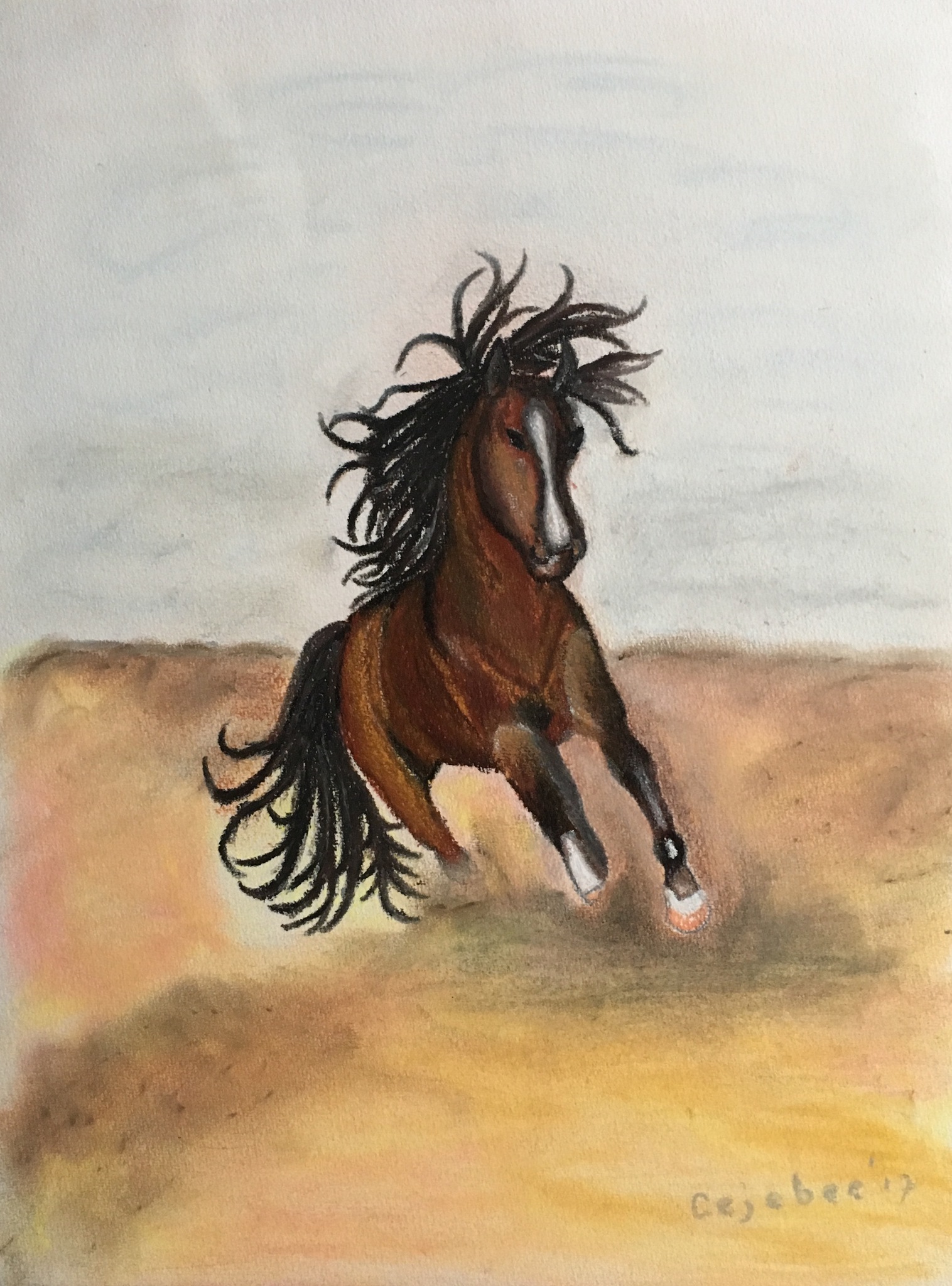 Een wild galopperend paar in soft pastel. Gewoon uitproberen of zoiets ook zou lukken. Ik moest wat grover gaan uitbeelden.