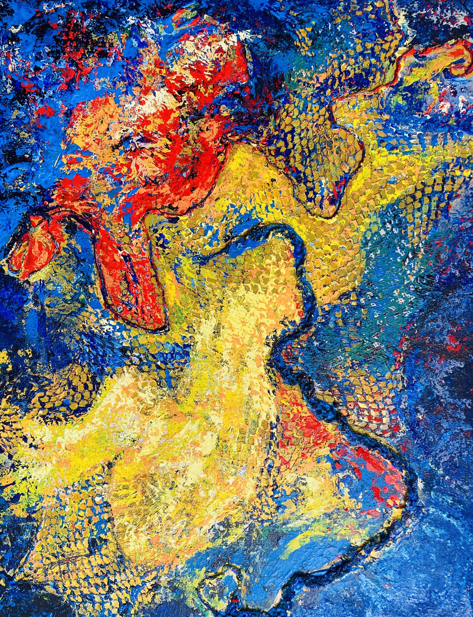 Geel Blauw Acryl Mixed Media