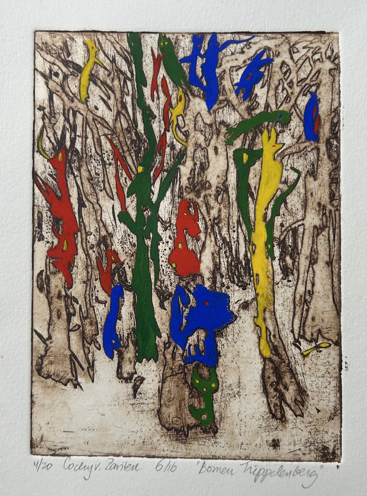 Momenteel aan t schilderen met olieverf, maar ook soms potlood en pen. Ook maak ik etsen, verlevendigt met aquarelverf. Les gehad van Pierre van Lith (schilderen), Francesco Antonietti (etsen).