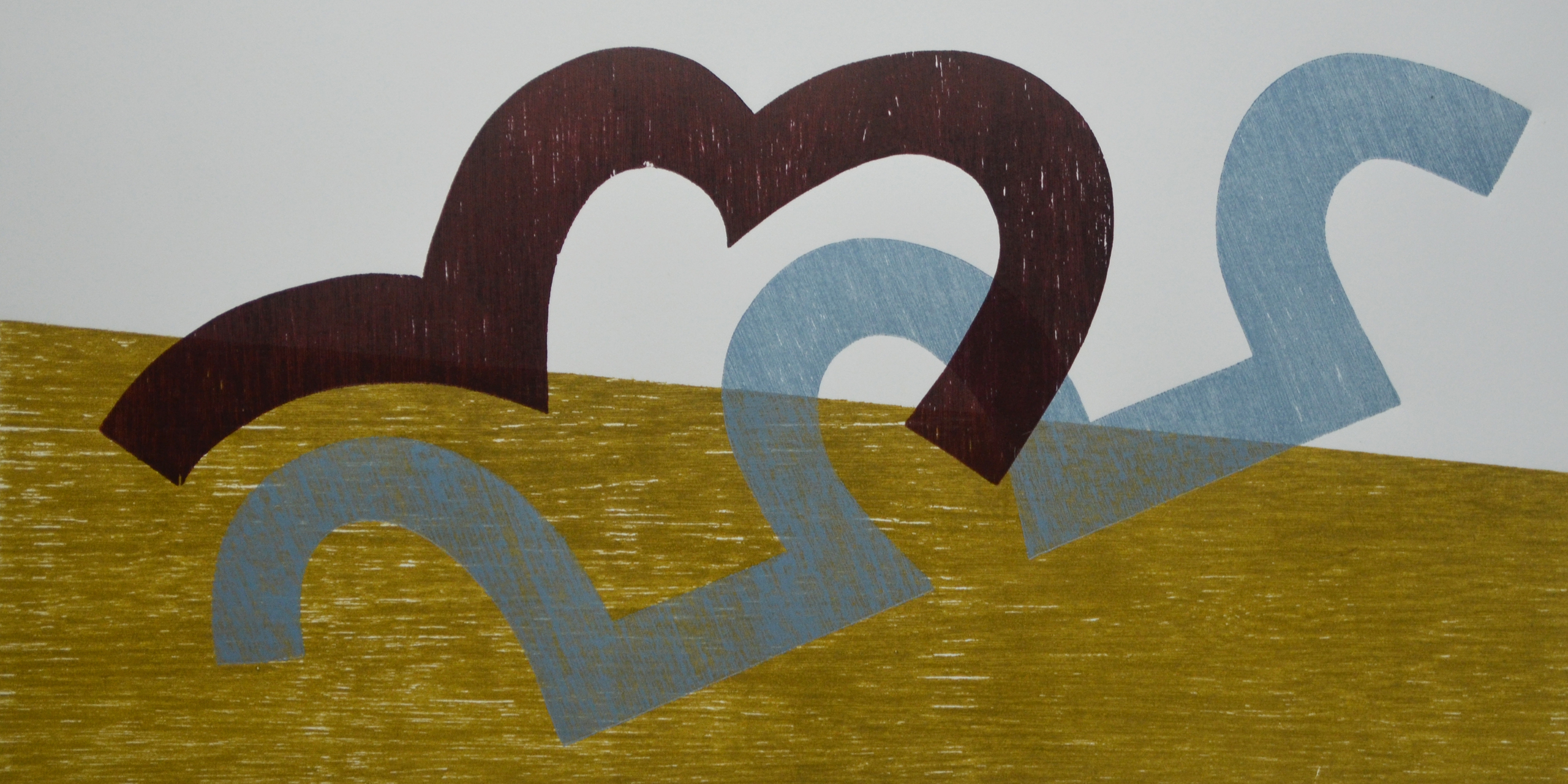 Houtdruk - sjabloondruk op papier, 3 kleuren, oplage 3.
