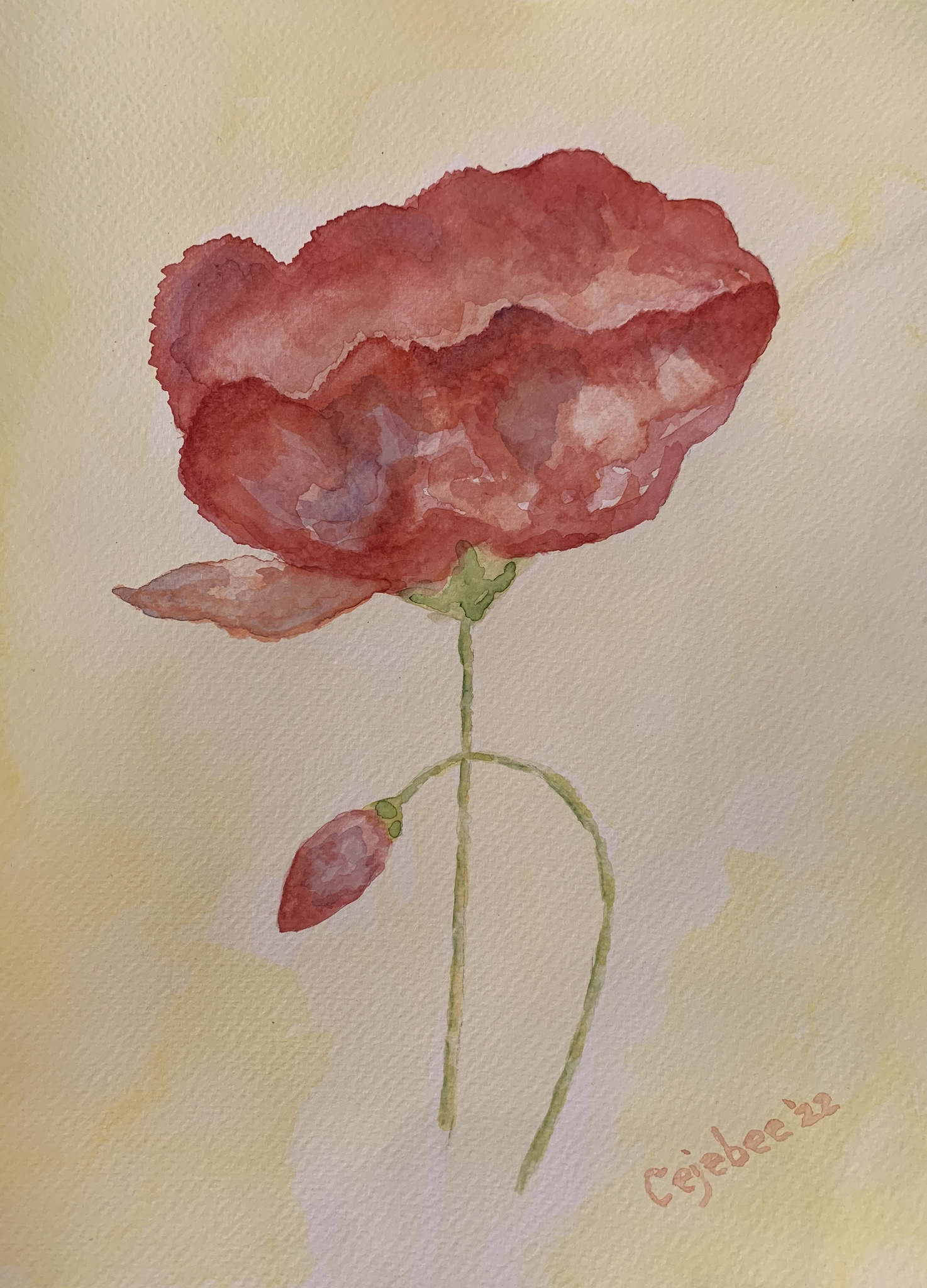 Cejebee Klaproos Met Knop Aquarel