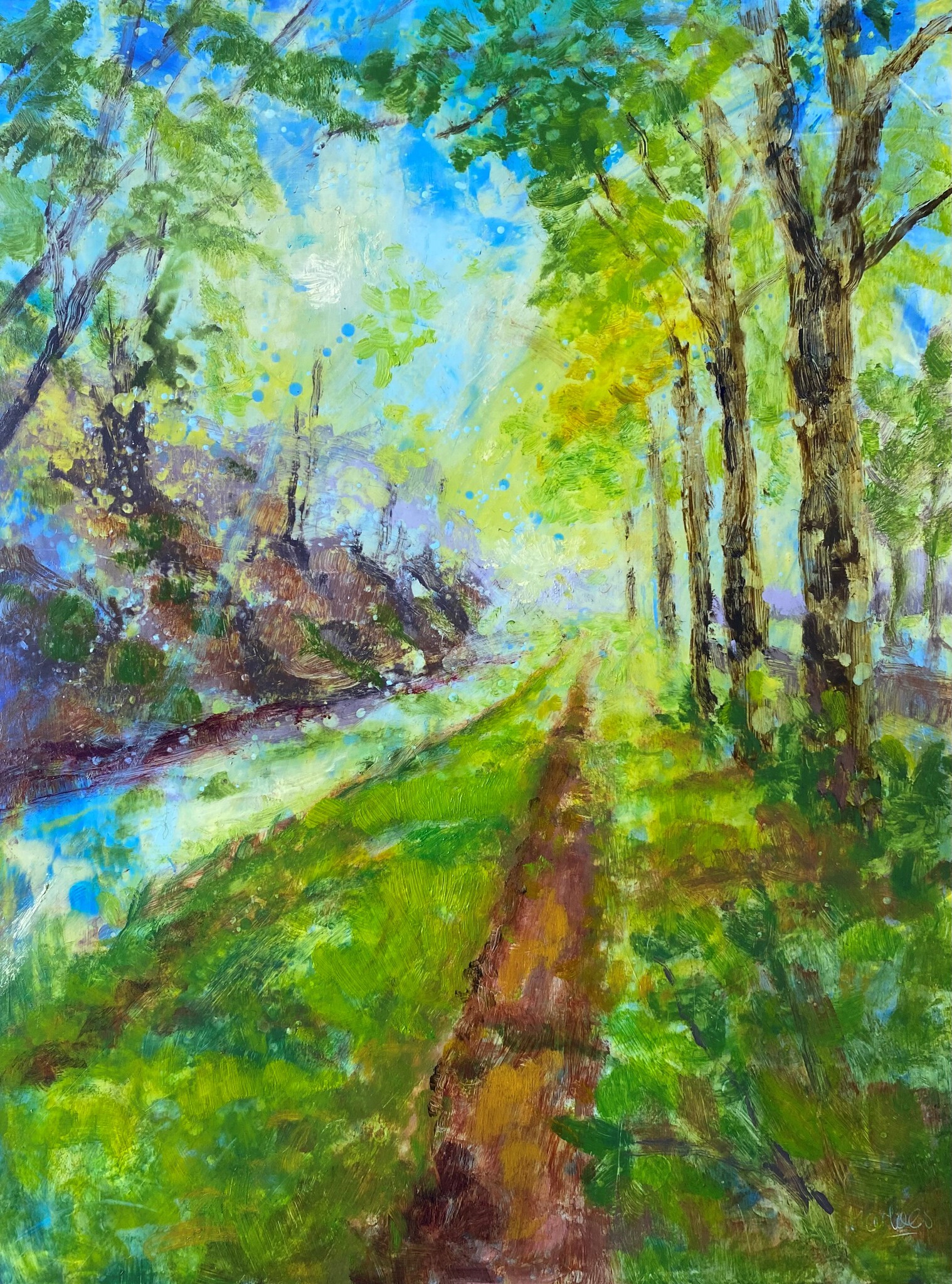 Schilderij Geel Landschap Paars Groen Licht Olieverf Groningen Lichtstraal Creatieve Channel Lichtwerker Marloesbuigelboering Frequentie