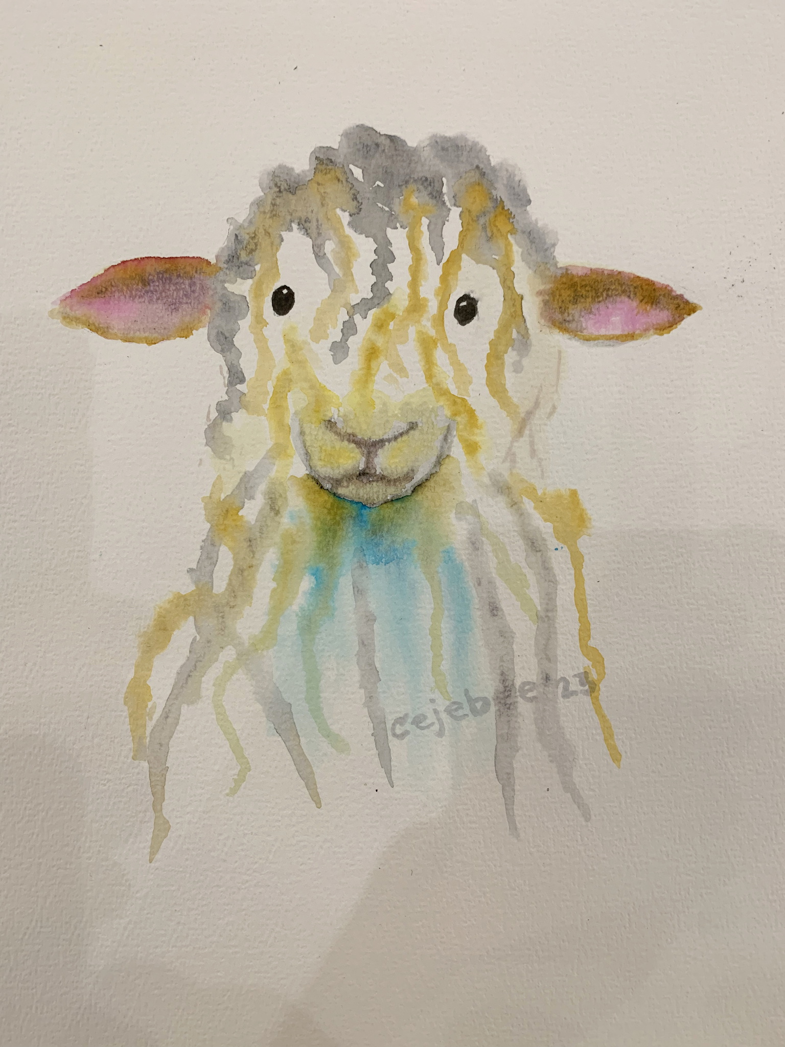 Opnieuw dezelfde schapenkop met wol. Ik zorgde dit keer voor minder wol. Welk schaap vindt u mooier?