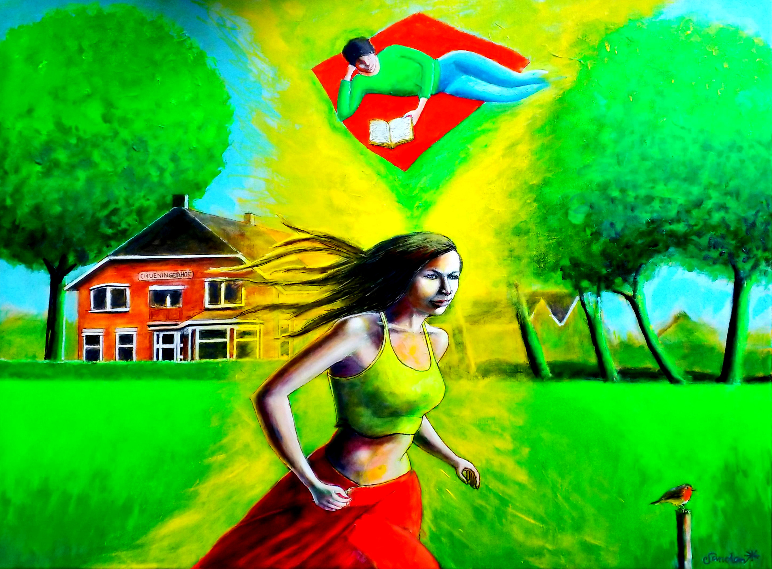 Ik maak figuratief-sureeele etsen, tekeningen, digitale grafiek, schilderijen en 3D objecten, vaak met wat ironie.