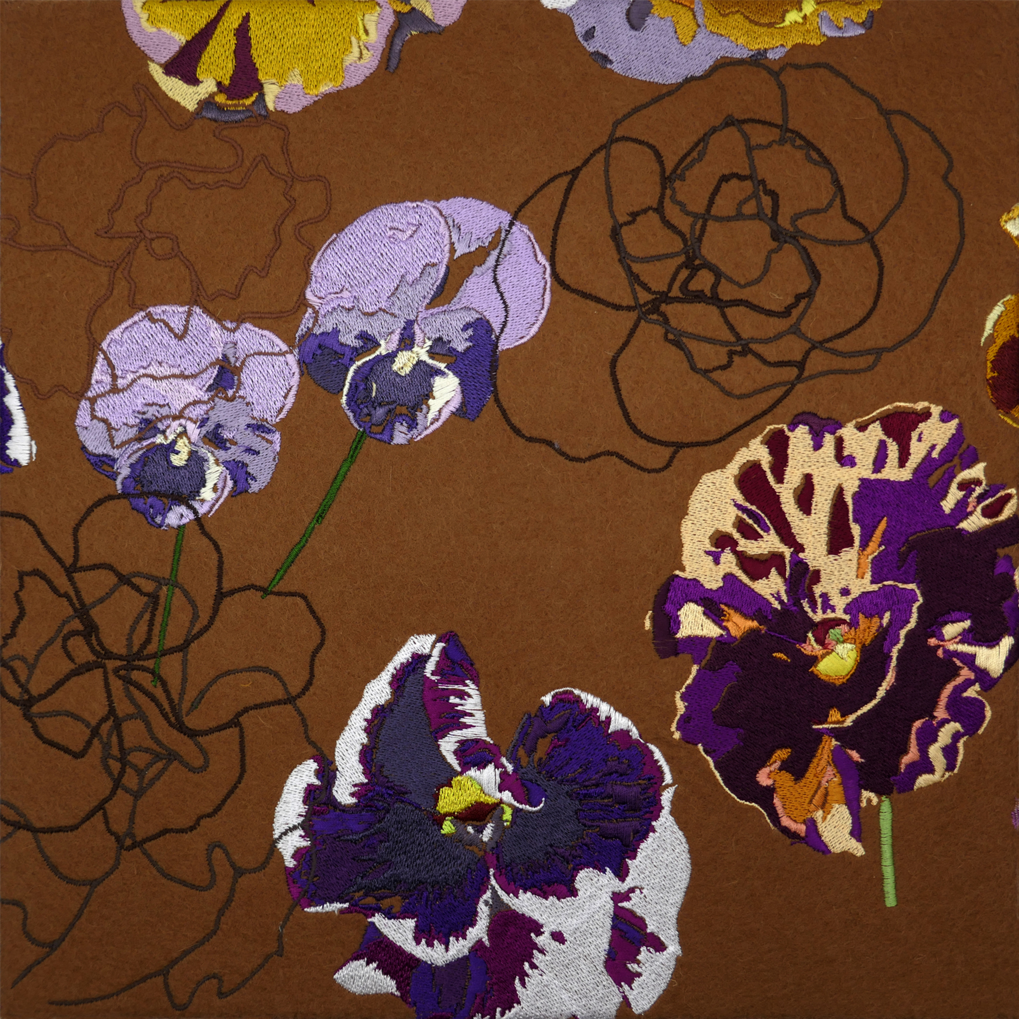 wolvilt, mat en glansgaren, borduurzijde, hout, 5 vlakken bekleed.