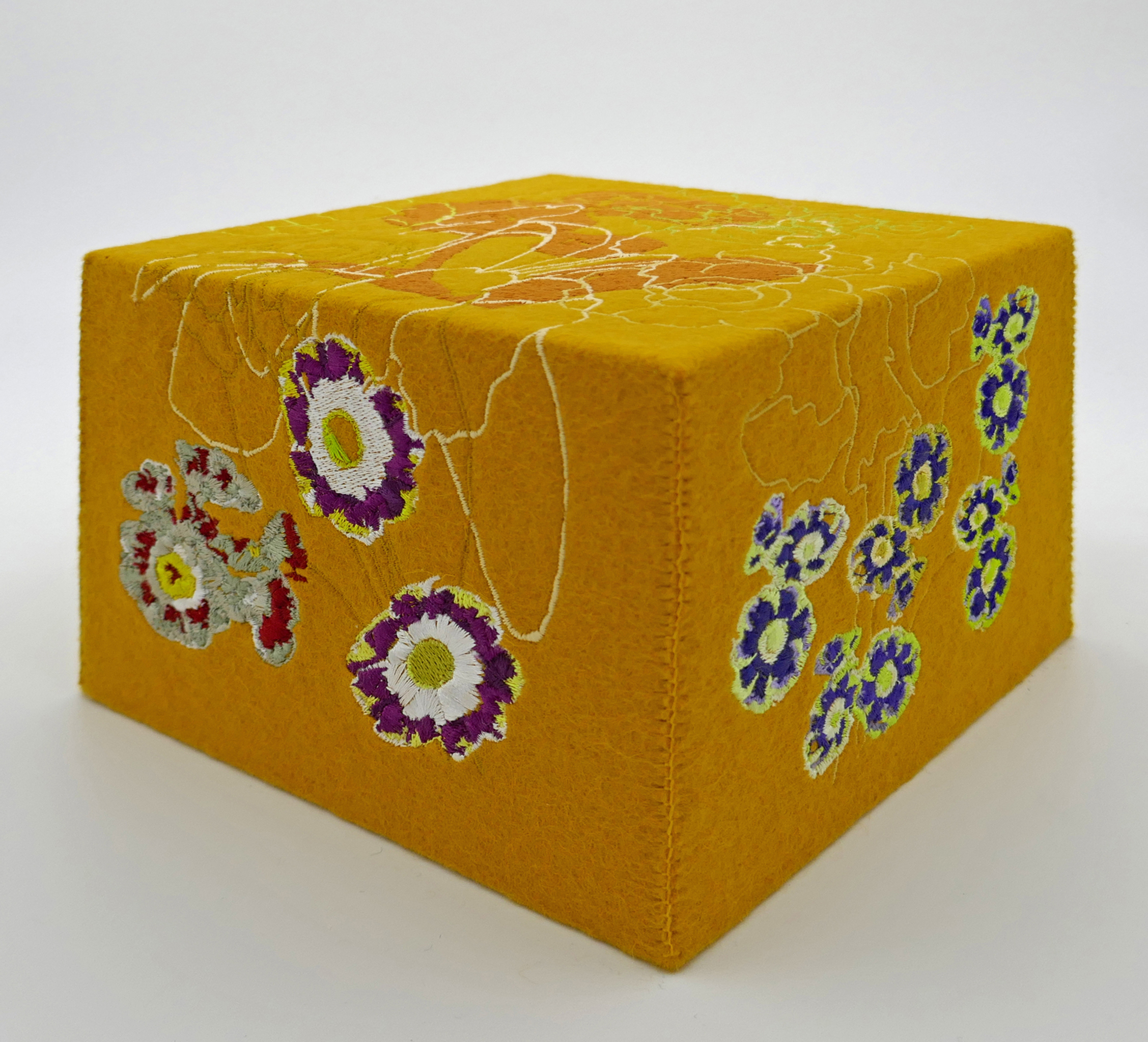 wolvilt, mat en glansgaren, borduurzijde, hout, 5 vlakken bekleed.