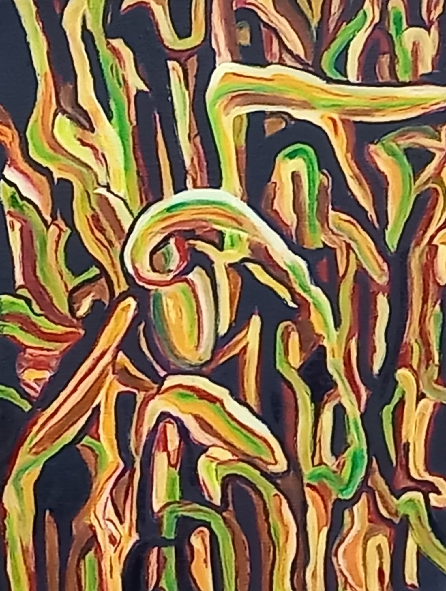 Vorig jaar, toen er ook in Nederland en België er echt een droogteperiode was, heb ik meerdere foto's gemaakt van uitgedroogd gewas waaronder mais. Hier is dit schilderij op gebaseerd. Deze hoort bij uitgedroogd gewas I