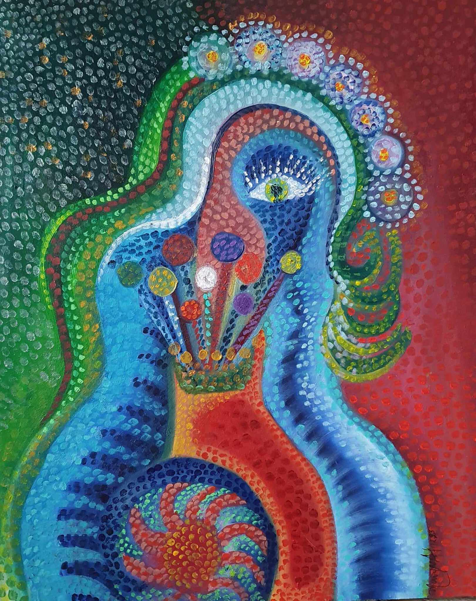 Kleuren staan centraal in mijn werk, met als thema 's natuur en fantasie. Ik werk zowel abstract als figuratief. Vanuit een voortdurende drang om te vernieuwen zoek ik naar steeds andere technieken voor mijn werk.