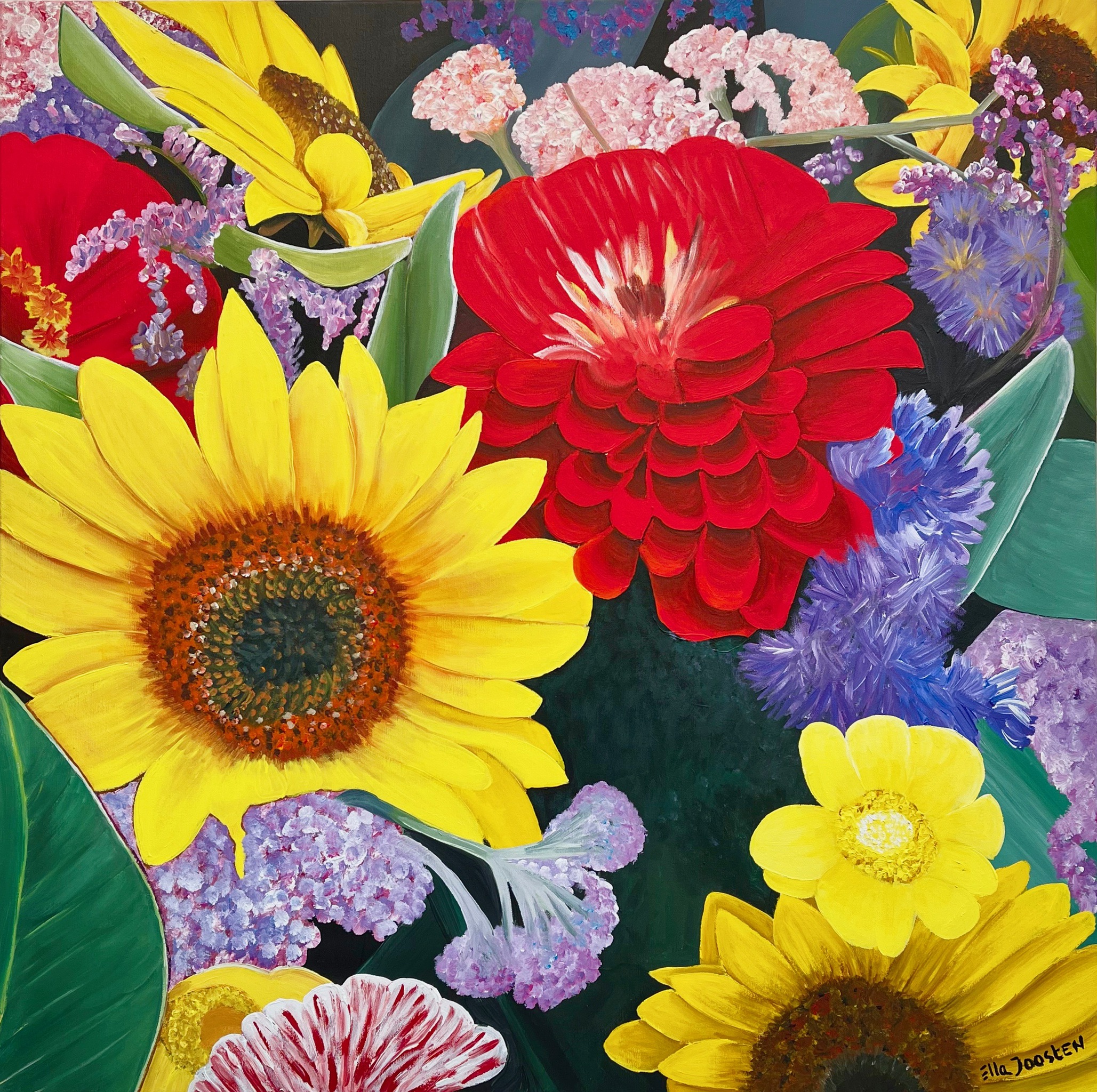 Ella Joosten heeft zich in de loop der jaren ontwikkeld tot een veelzijdig professioneel beeldend kunstenaar. In haar ruime atelier in Eindhoven maakt ze acrylschilderijen in alle formaten, gemengde technieken en houten objecten. Veel bedrijven, particulieren en instellingen hebben haar werk aangekocht. Ze heeft opdrachten uitgevoerd voor gemeenten, bedrijven en particulieren. Ella Joosten heeft tal van exposities op haar naam staan, in zowel binnen als buitenland. Haar werk is in kunstboeken gereproduceerd en in publicaties beschreven.