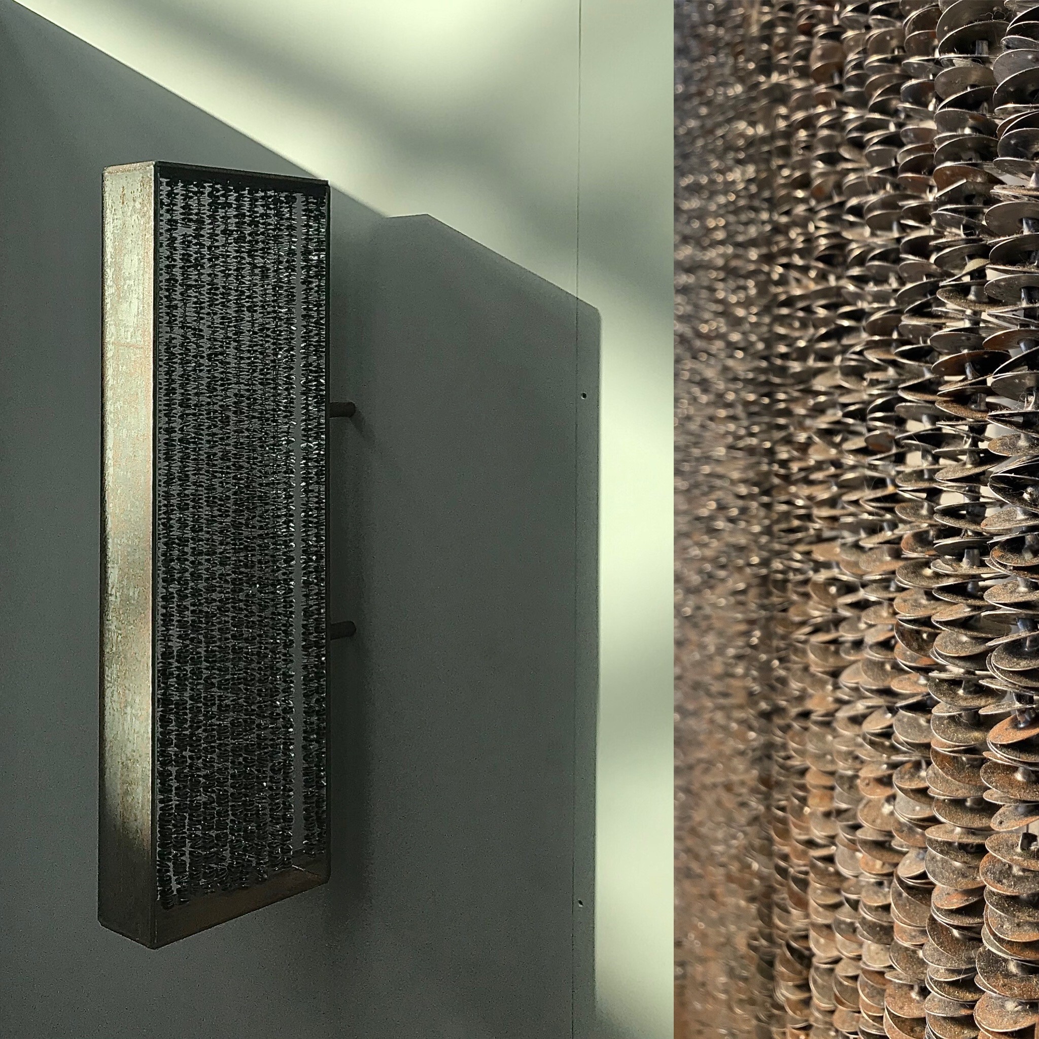 Deze installatie is een expositiewerk, gerealiseerd ter herdenking en symbool voor alle muren die na de val van de Berlijnse muur wereldwijd zijn opgetrokken. _het ijzeren gordijn is gemaakt van ruim 3000 pitvoetjes uit gebruikte waxinelichtjes en zit in een frame van cortentstaal. Aan de binnenkant van het frame zit aan weerszijde een spiegel die _het ijzeren gordijn eindeloos laat lijken. Het werk wordt gepresenteerd in een u- vormige opstelling van ca 180b x 90d x 240h. Informeer over beschikbaarheid en overige condities.