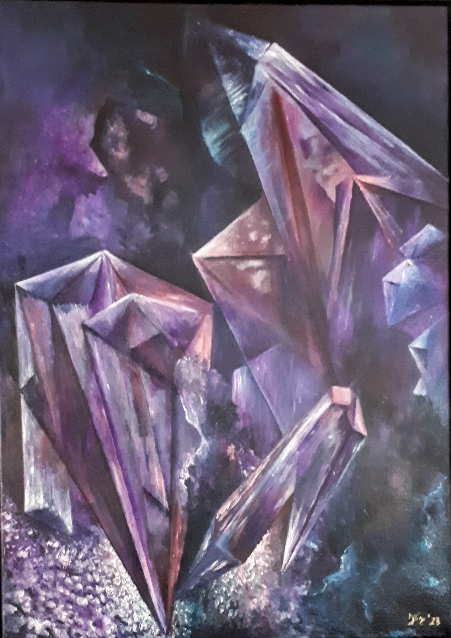 Figuratief Blauw Expressief Paars Licht Olieverf Purper Duister Krachtig Edelsteen Amethyst
