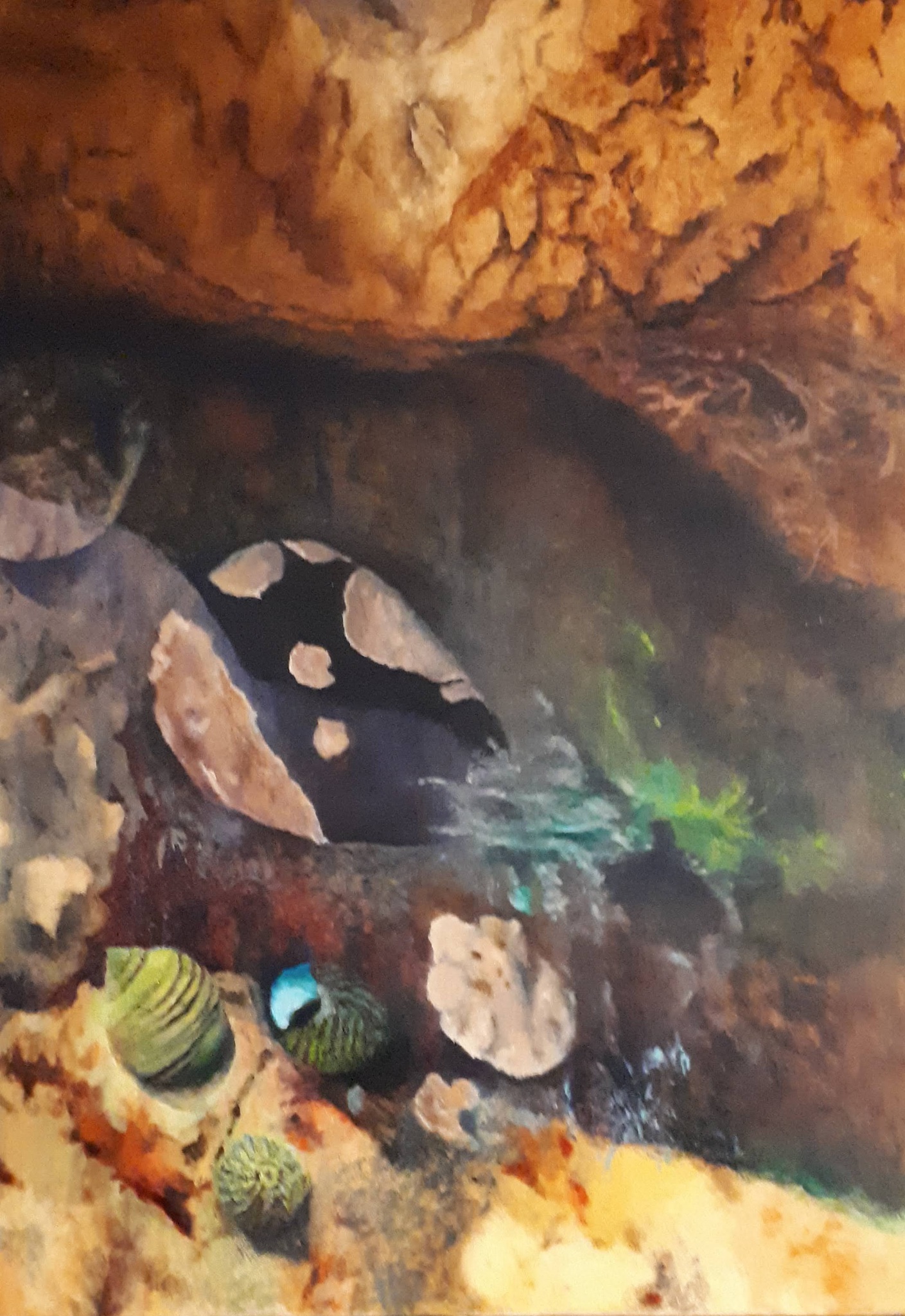 Laag water aan de Cote d.Armor, de woeste noordkust van Bretagne. Een groot getijdenverschil van zo'n 10 meter. Bij vloed het water van de zee, bij eb toont zich een rijke onderwaterwereld, vol kleuren en vormen. Low Tide I, II en III heb ik gemaakt naar aanleiding van foto's die mijn beste vriendin mij stuurde, in de juiste verwachting dat ik er iets mee zou kunnen......