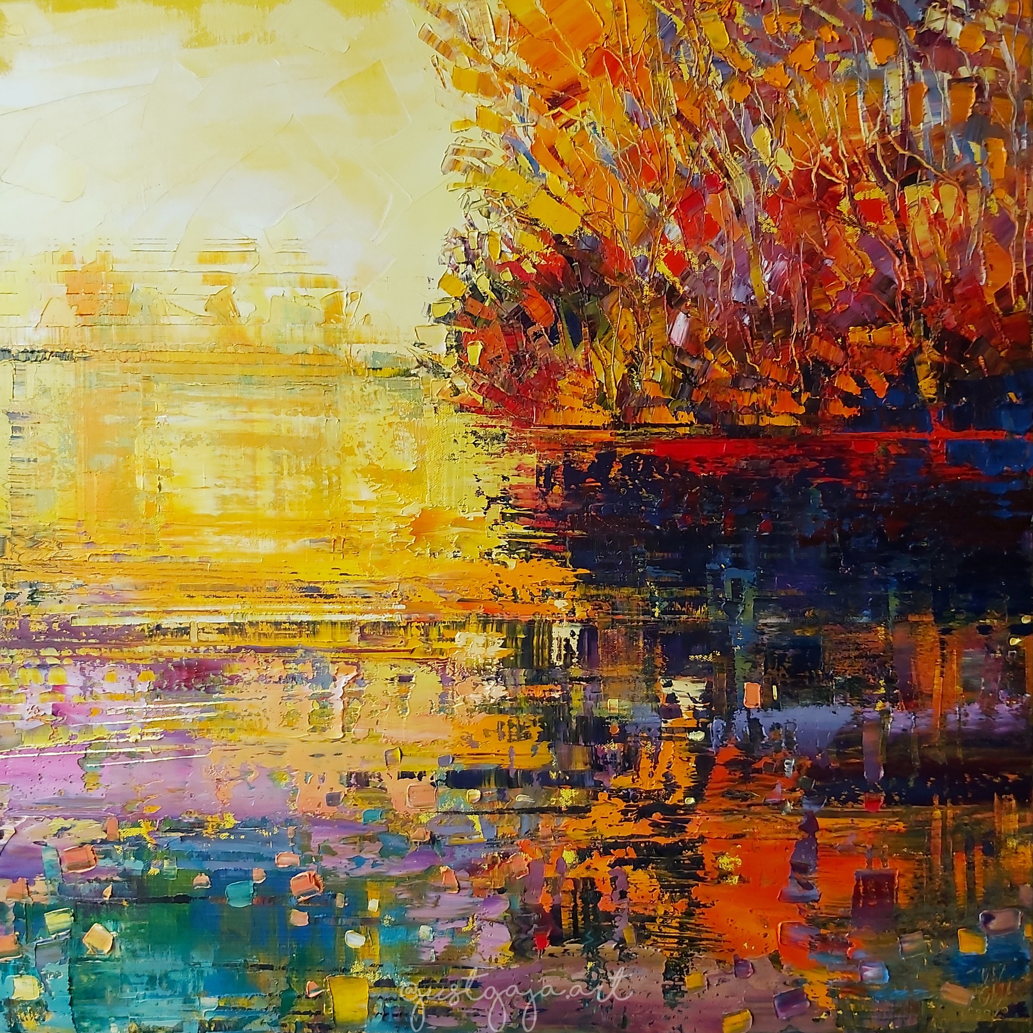 Schilderij Abstract Modern Art Kleuren Kleurrijk Oil Canvas Kunst Painting Landscape Figurative Artist Impression Kunstwerk Meer Lake Forest Impressionism Colour Happy Woonkamer Daily Colourfull Interior