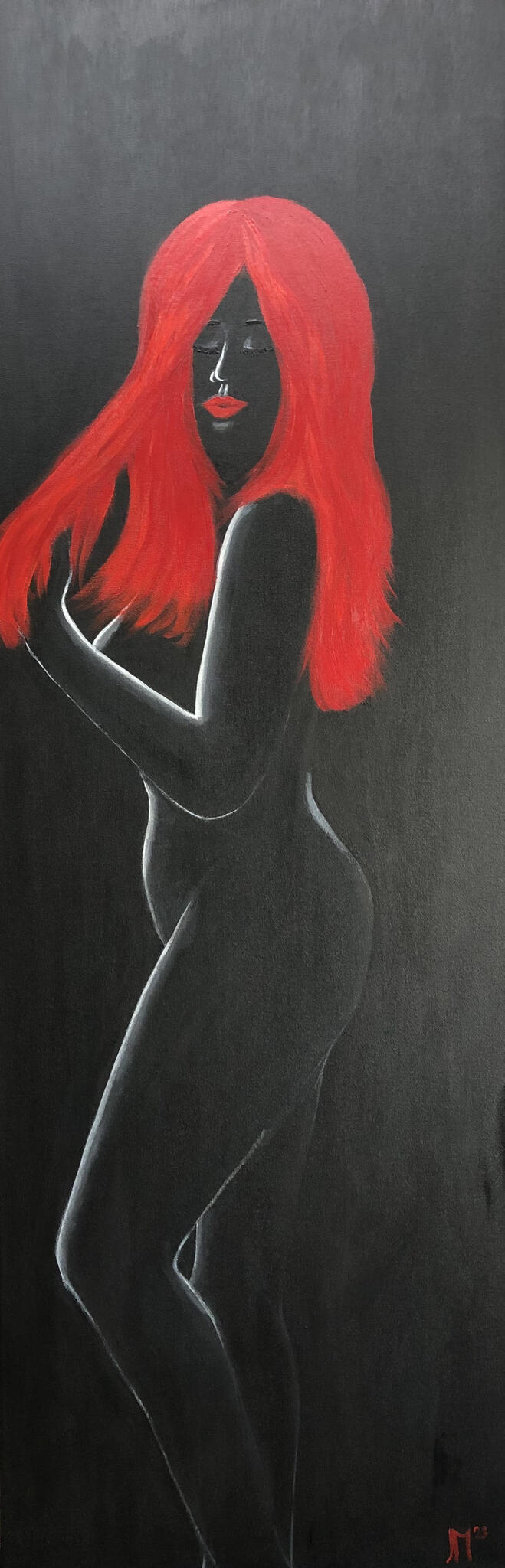 Vrouw Sexy Naakt Rood Haar Zwart Silhouette