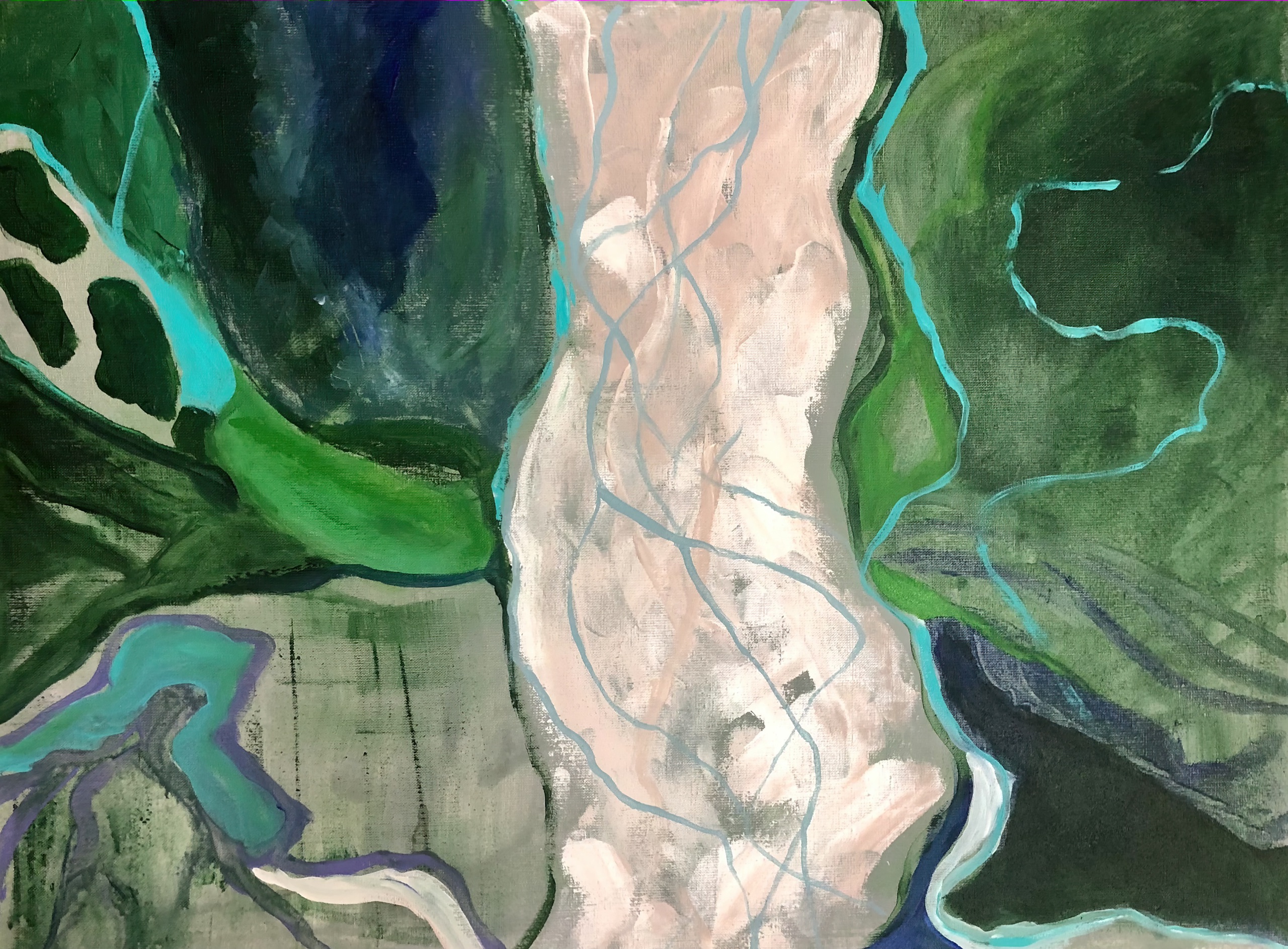Wat kun je met een drone hoog in de lucht zien. Je kijkt neer op de aarde, een delta, een landschap. Verrassend zicht, kleuren bij elkaar gezocht en dit is het resultaat.