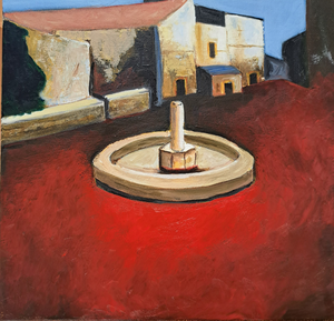 mijn schilderijen hebben hun beginpunt in een ervaring die ik heb met een bepaalde plek, dorp of stad, deze herinnering neem ik mee en probeer ik schilderend abstract figuratief vorm te geven.