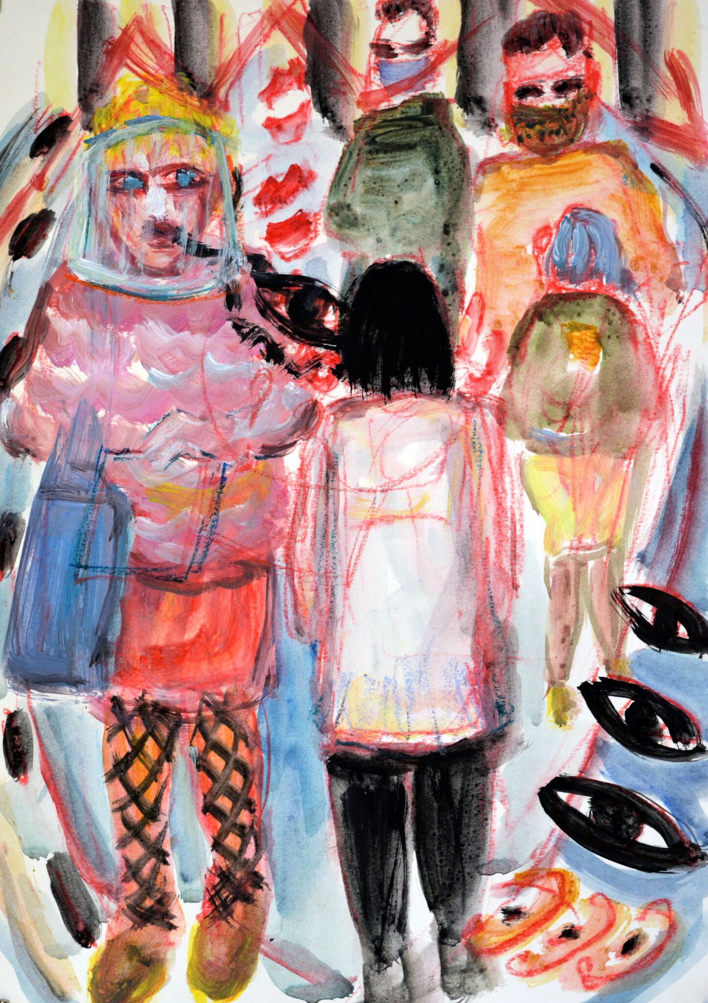 De corona-vermomming speelt de artiest parten. Er wordt niet meer gebeld. Van luisteren is geen sprake. Haar verwondering is groot bij al die vermomde figuren, de een als astronaut, de ander onzichtbaar. Het is een beeld van verwondering!