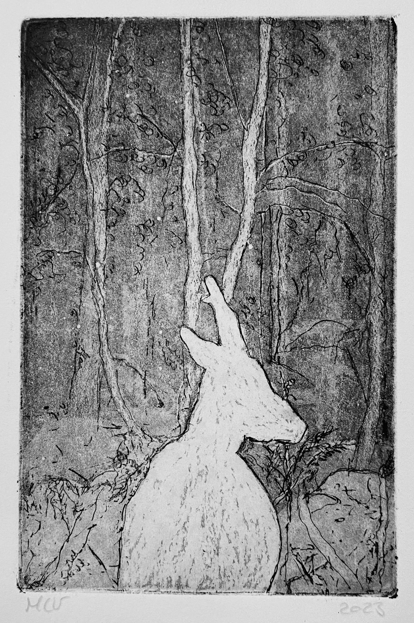 Marian Visser (Middelharnis, 1968) maakt etsen, litho's, lino's en tekeningen van (inheemse) dieren, mensen en bomen.