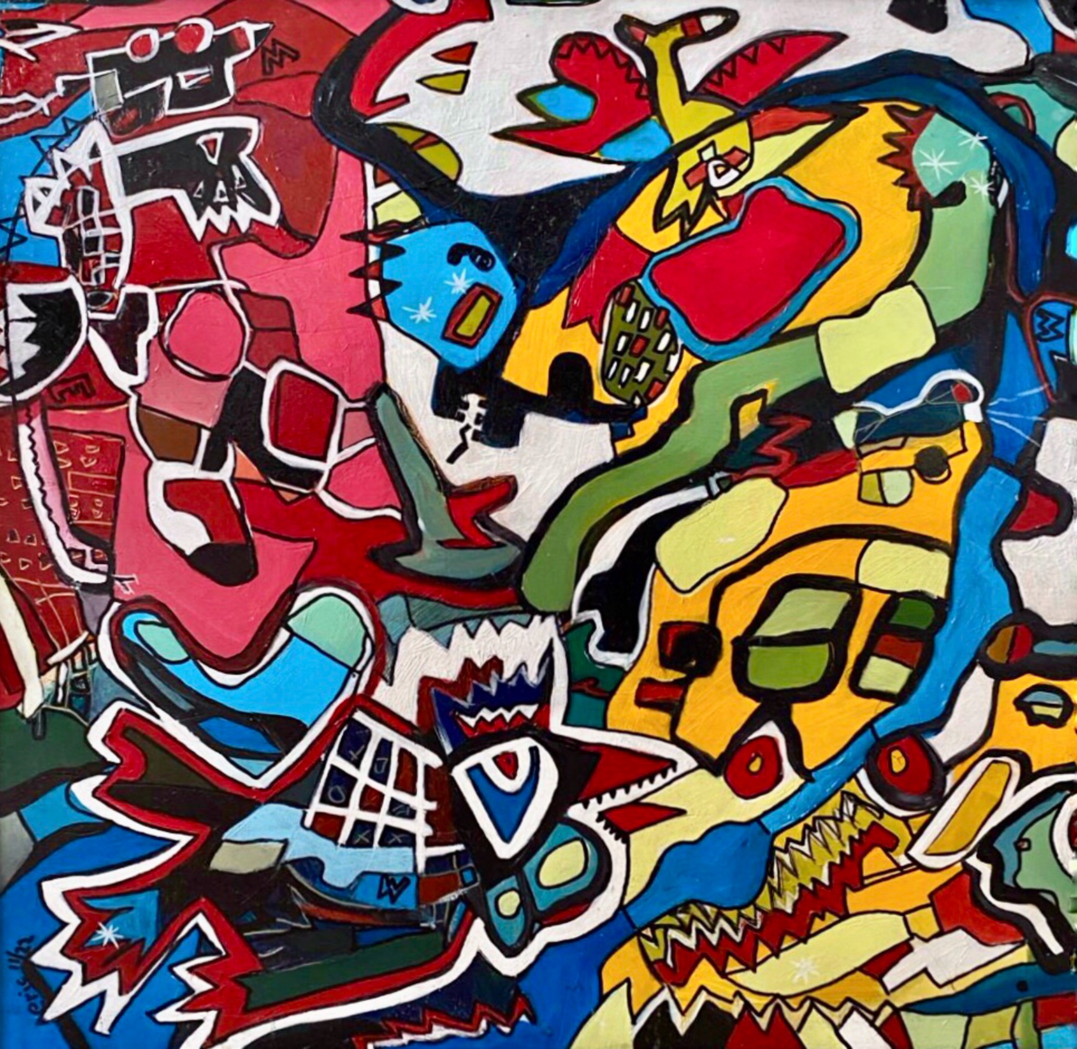Figuratief Kleurrijk Olieverf Paneel Vrolijk