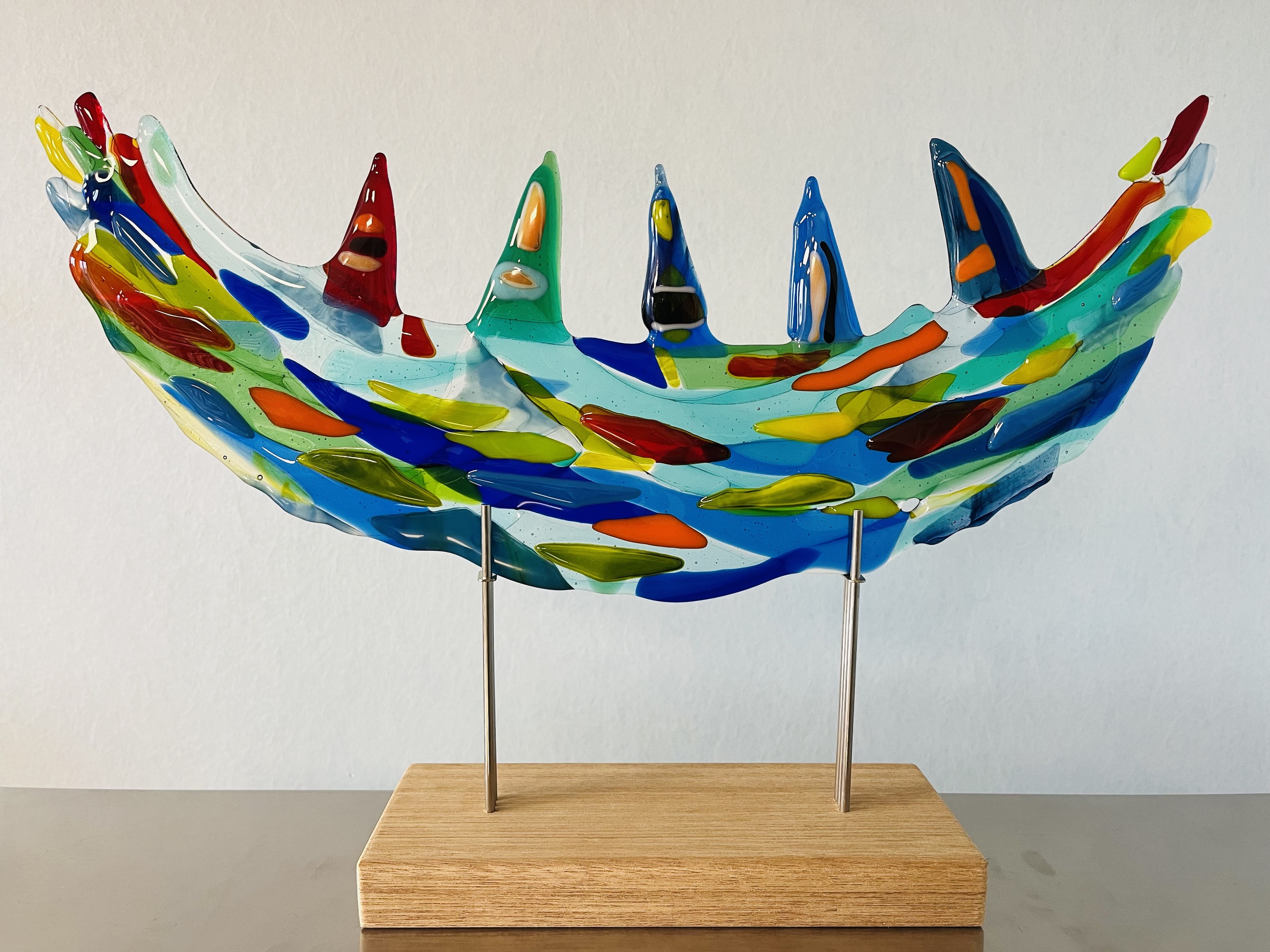 Glas biedt veel mogelijkheden om mee te werken. De natuur, aarde, wind en water zijn inspiratiebronnen. De gegoten en de gefusede glas objecten zijn speels en kleurrijk en laten de fantasie werken.