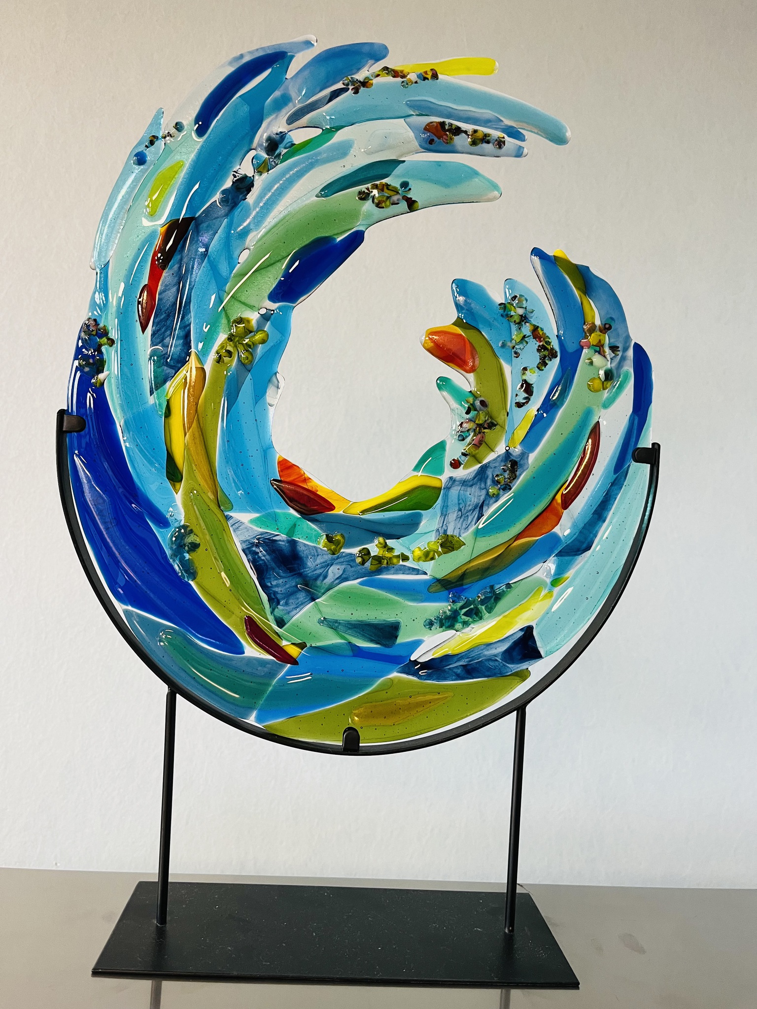 Glas biedt veel mogelijkheden om mee te werken. De natuur, aarde, wind en water zijn inspiratiebronnen. De gegoten en de gefusede glas objecten zijn speels en kleurrijk en laten de fantasie werken.