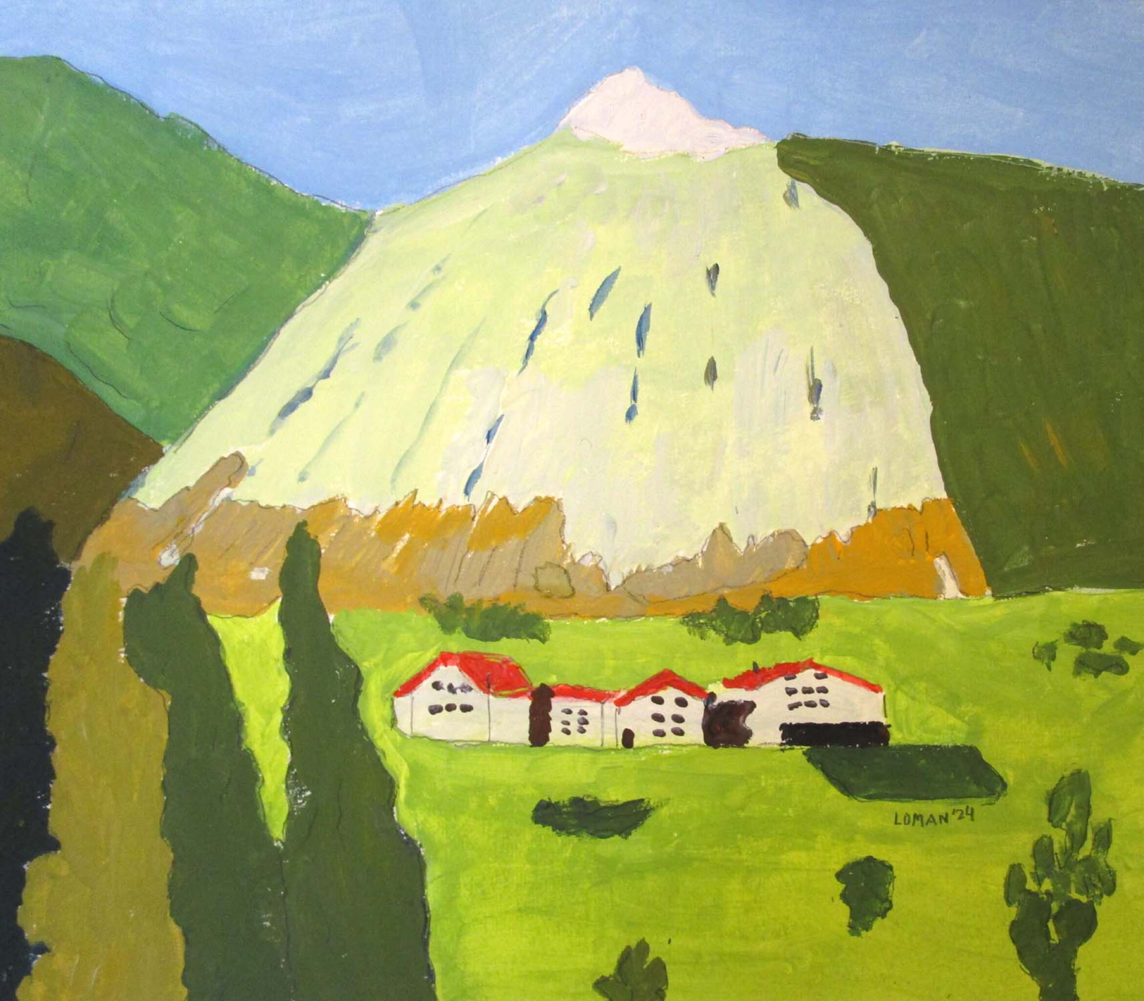 Karel Loman schildert expressief. Zijn landschappen en stads- en dorpsgezichten zet hij in heldere kleuren op papier. De sfeer van het landschap staat bij hem voorop. Loman werkt voornamelijk met temperaverf, aangevuld met inkt of potlood.