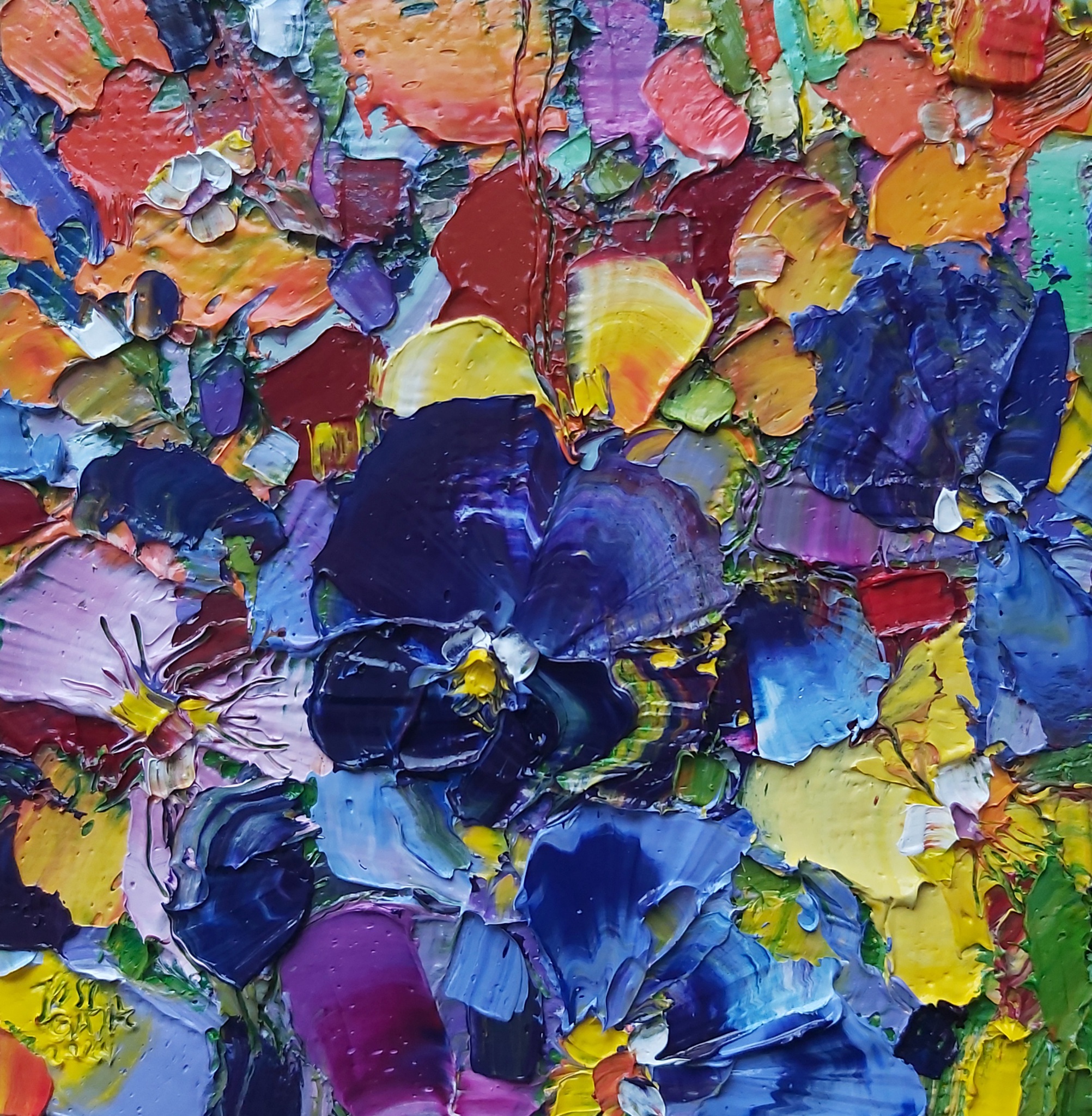 Schilderij Abstract Rood Paars Bloemen Art Kleurrijk Oil Canvas Kunst Bloem Violet Still Life Flowers Figurative Stillevens Artist Impression Kleine Miniatuur Happy Woonkamer Levendig Viooltjes
