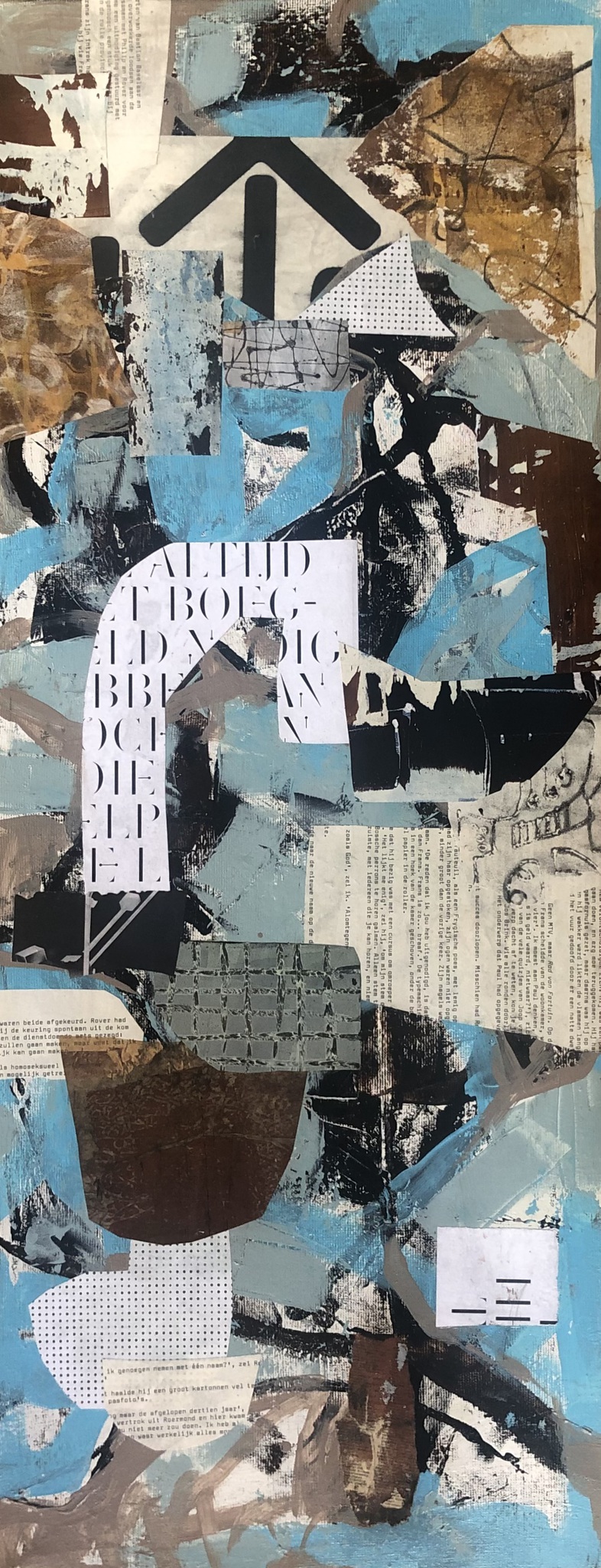 Ik maak schilderijen in gemengde techniek die met een zorgvuldige keuze van compositie, materiaal en kleur veel ruimte laten voor verbeelding.