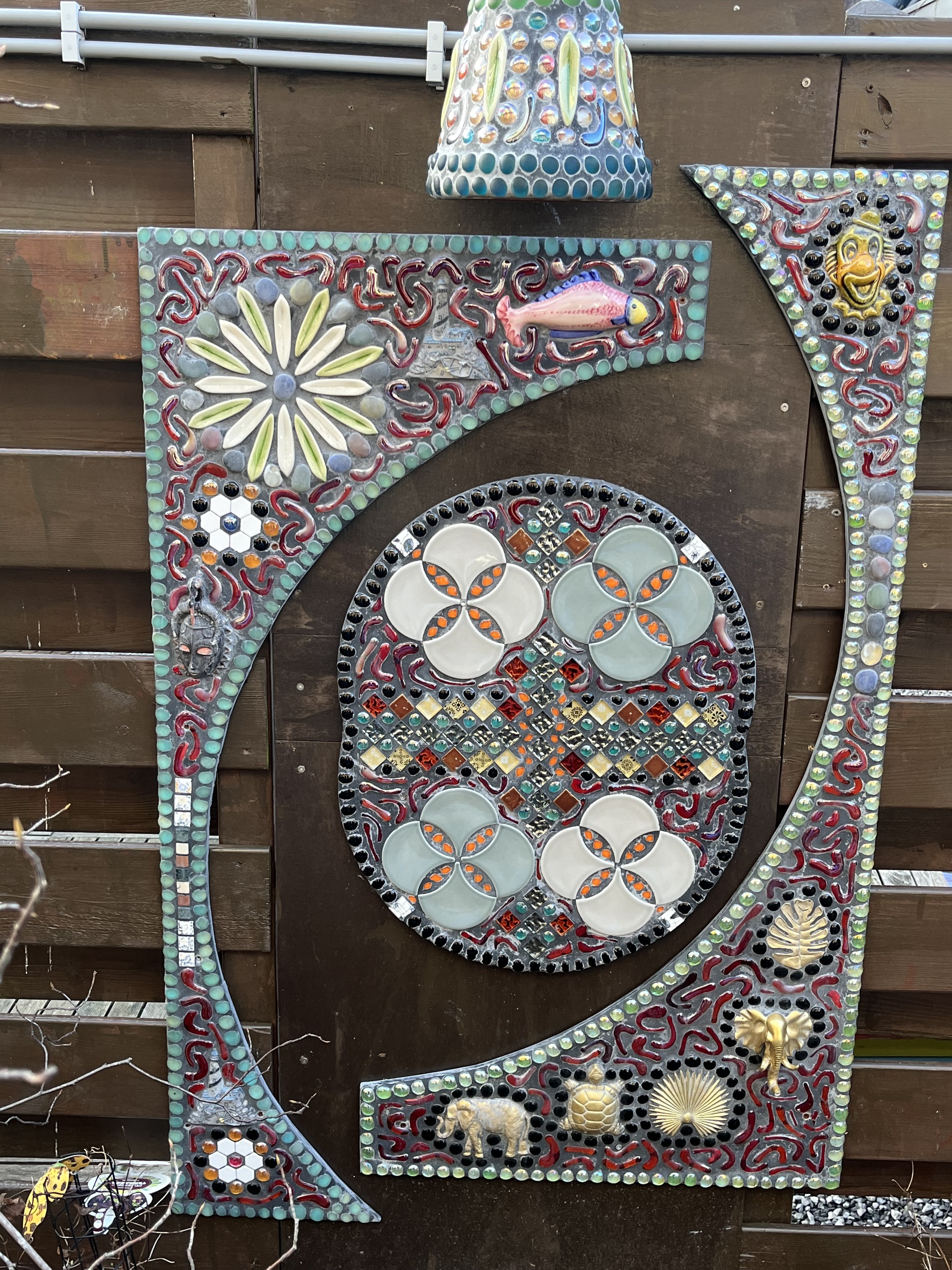 Kleurrijke en warme mozaïek gemaakt met liefde. Wij maken samen grote projecten en óók onze eigen stukken. Het verwerken van verschillende materialen is een belangrijke kenmerk van ons werk.