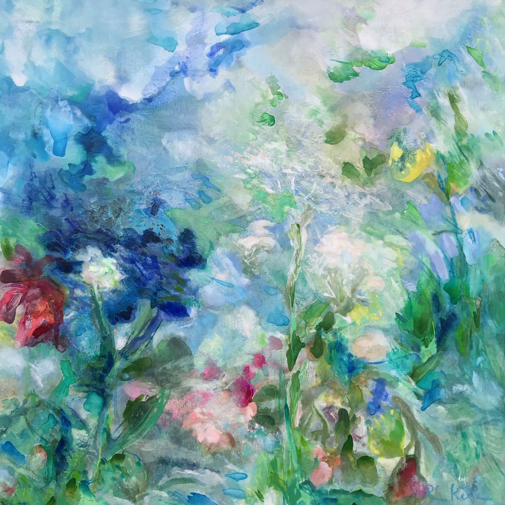 De eigen wereld van de tuin in kleuren, vormen en glans. Ik maak gebruik van de herinnering en intuïtie om met kleur en penseelstreek de ervaring, die ik heb opgedaan in de natuur terug te halen.