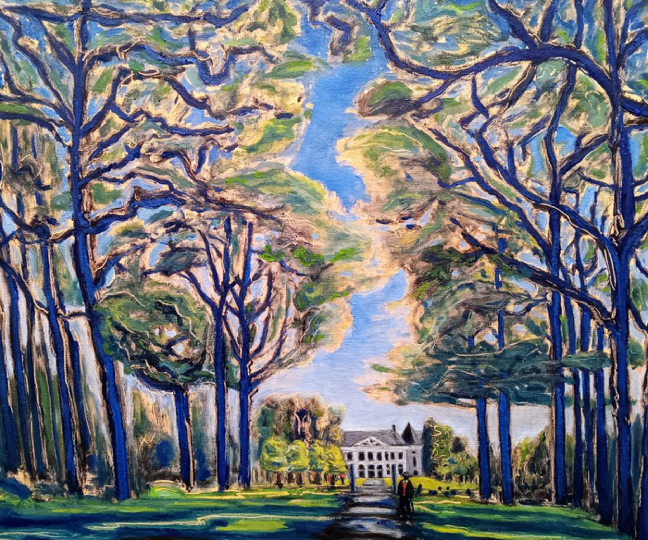 Via de kasteellaan lopend ga ik van Laans poorthuis, tussen eikenbomen door met schitterend de Dinkel en een fluitend vogelkoor, op Singraven aan, waar ik in mijn verbeelding de heer Laan zelf zie staan, die nog steeds als enige een Twents landgoed voor liefhebbers opendoet.