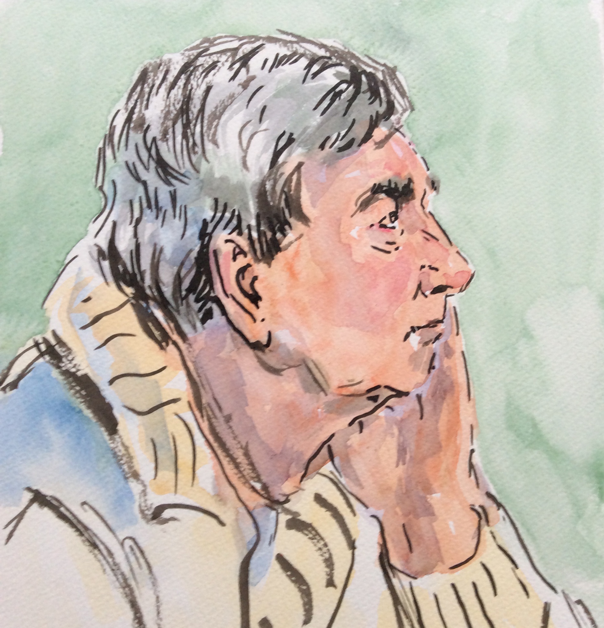 Profiel man in aquarel en inkt