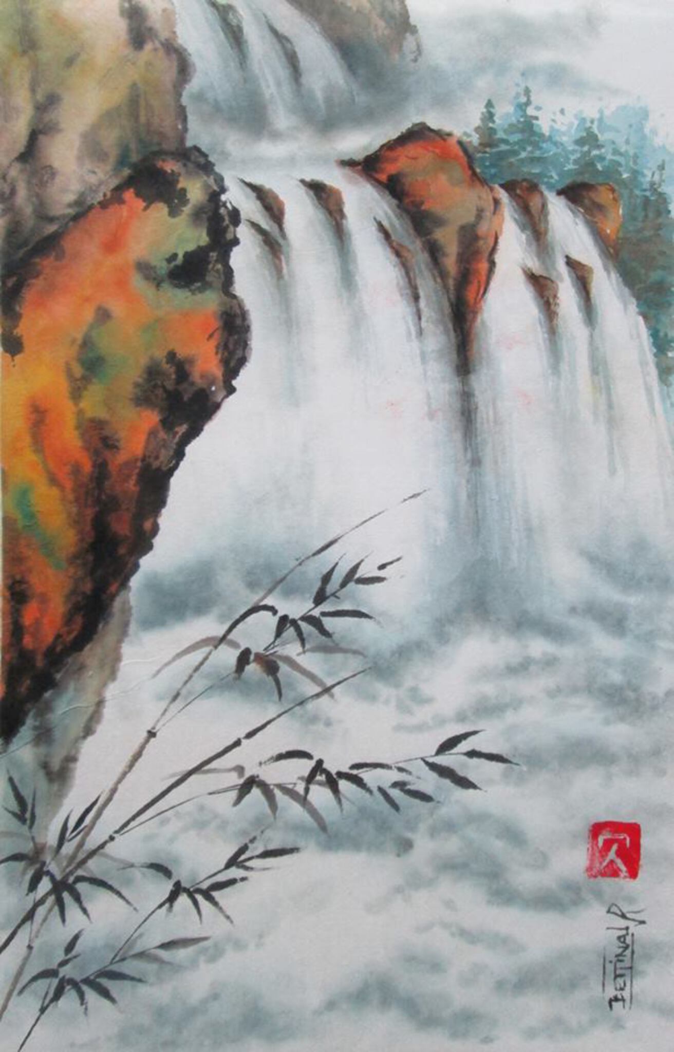 Aquarel Inkt Rijstpapier Waterval
