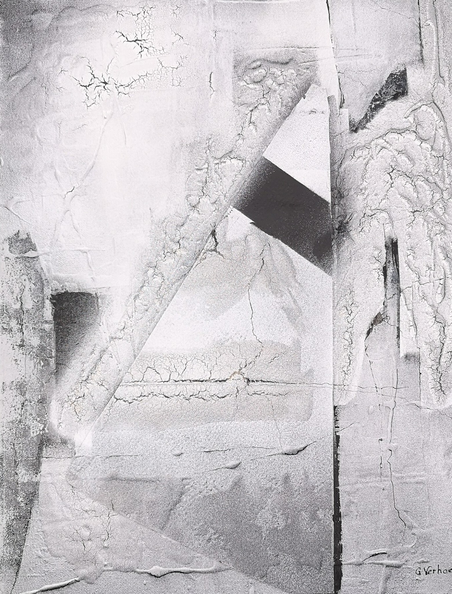 verf inkt craquelé collage op doek