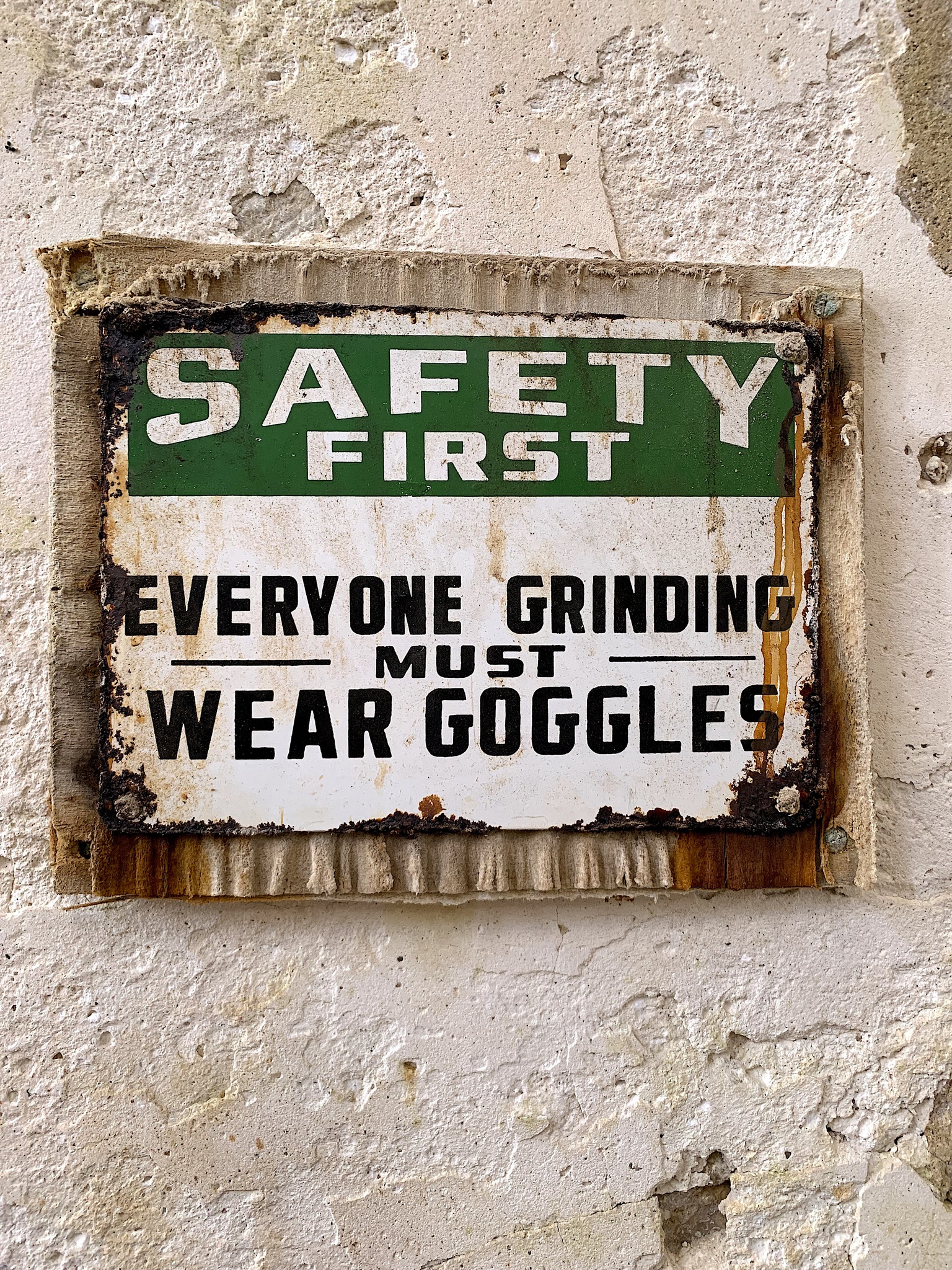 Het adagio voor alle werkplaatsen voor alle technieken wereldwijd: Safety First Deze foto is geprint op canvas en op een frame van gerecycled kunststof vastgemaakt. Formaat: 119 x 84 centimeter
