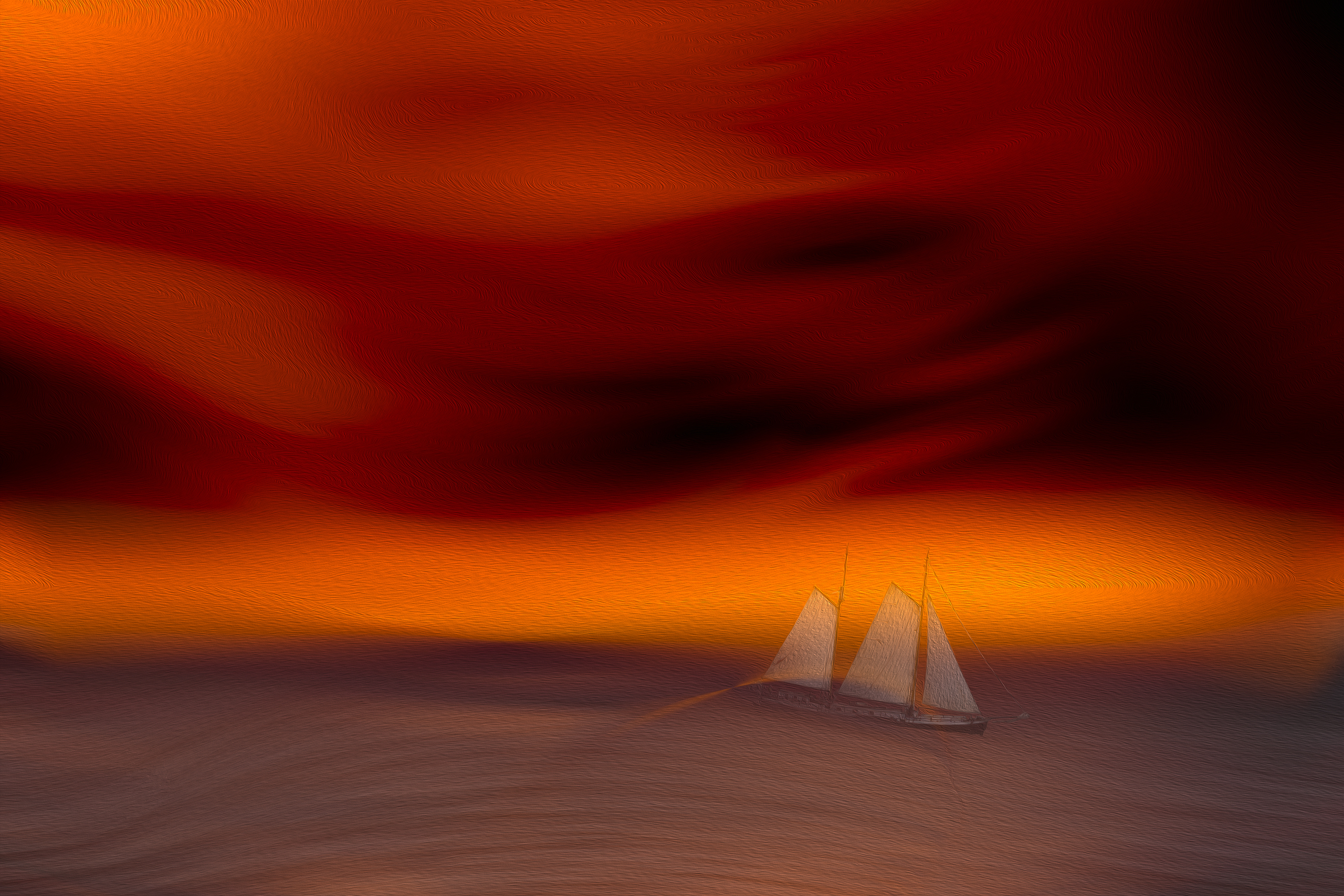 Zee Noordzee Zeilen Zeilboot Onrustig Ruig Fine Art Rood Oranje Sfeer