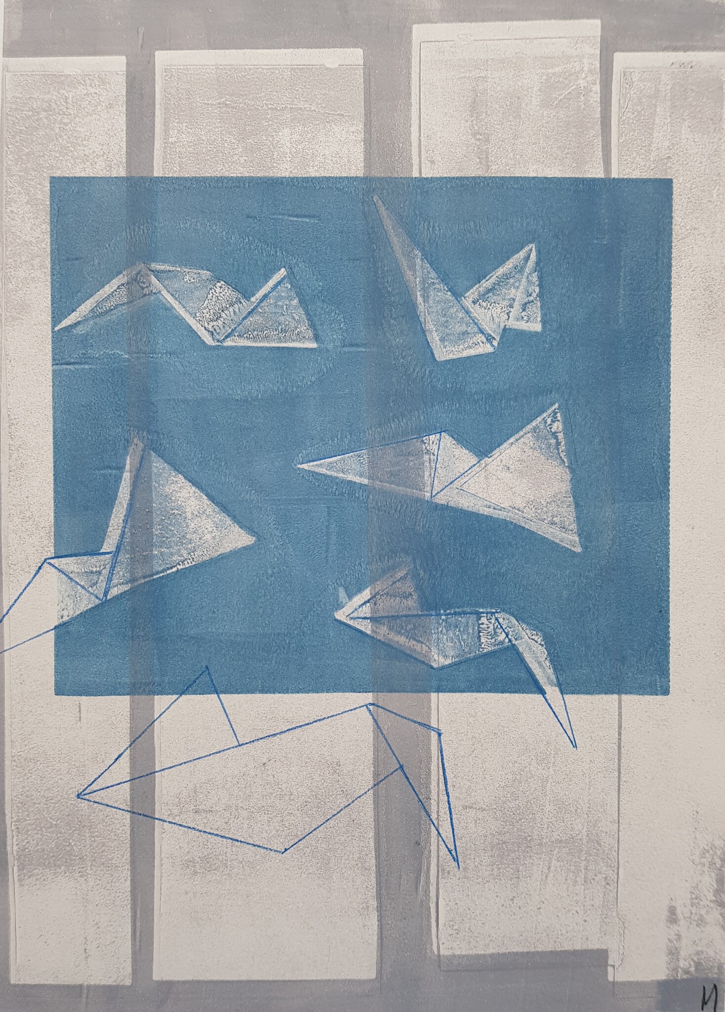 Wit Blauw Venster Vogels Driehoeken