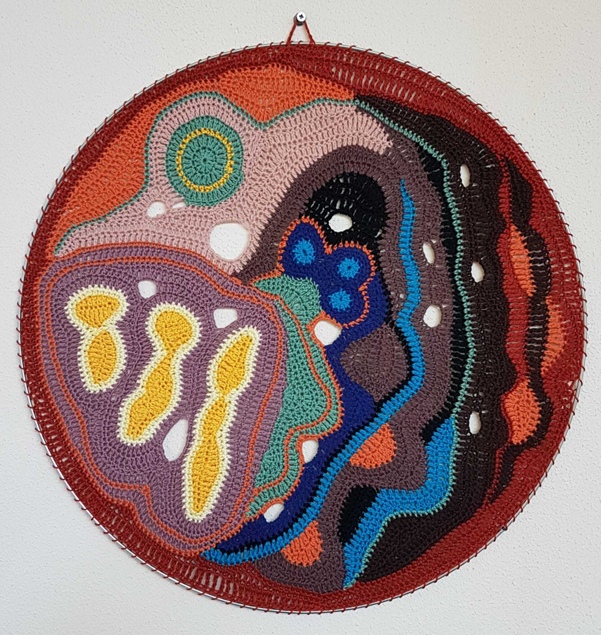 Haakwerk, volledig intuïtief gemaakt, zonder plan en zonder patroon. Alleen de kleuren heb ik vooraf bepaald.