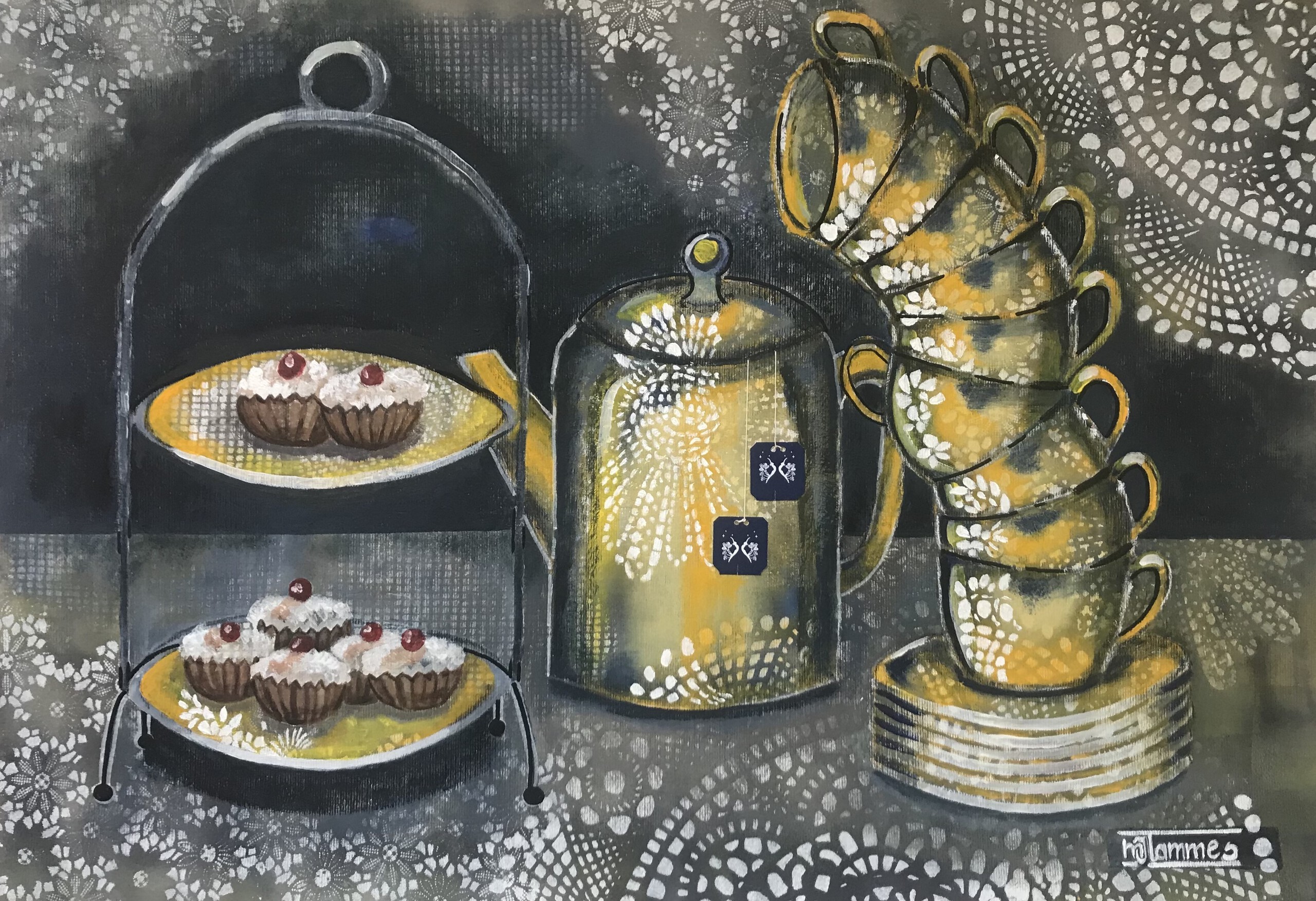 Acryl Papier Op Sjablonen Geel/zwart High-tea